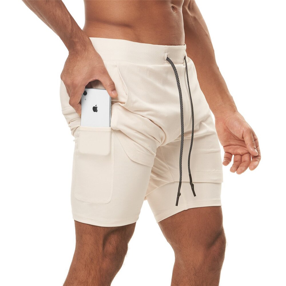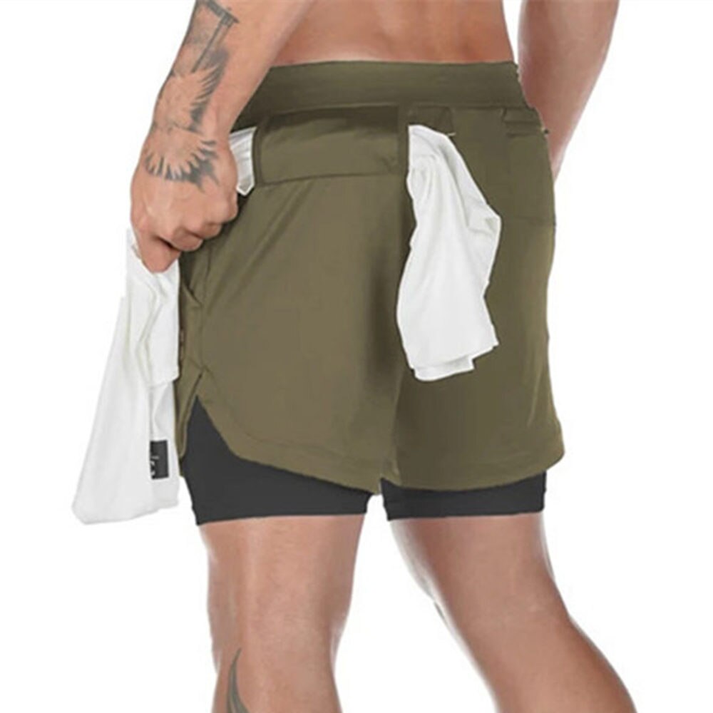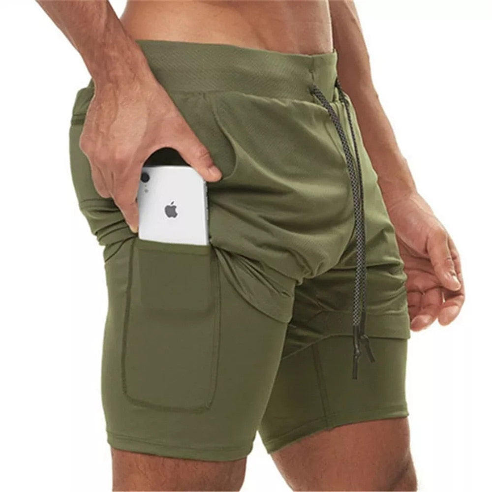 Men 2 in 1 Running Shorts Jogging Gym Fitness Training Quick Dry Double layer Short Pants Male Summer Sports Workout Bottoms