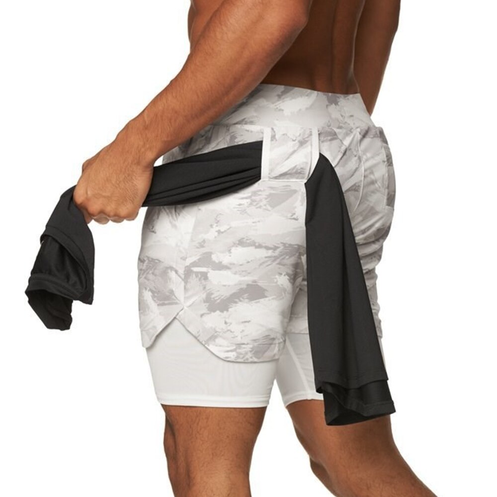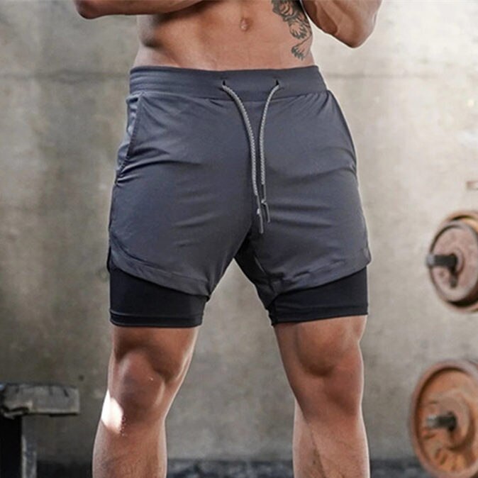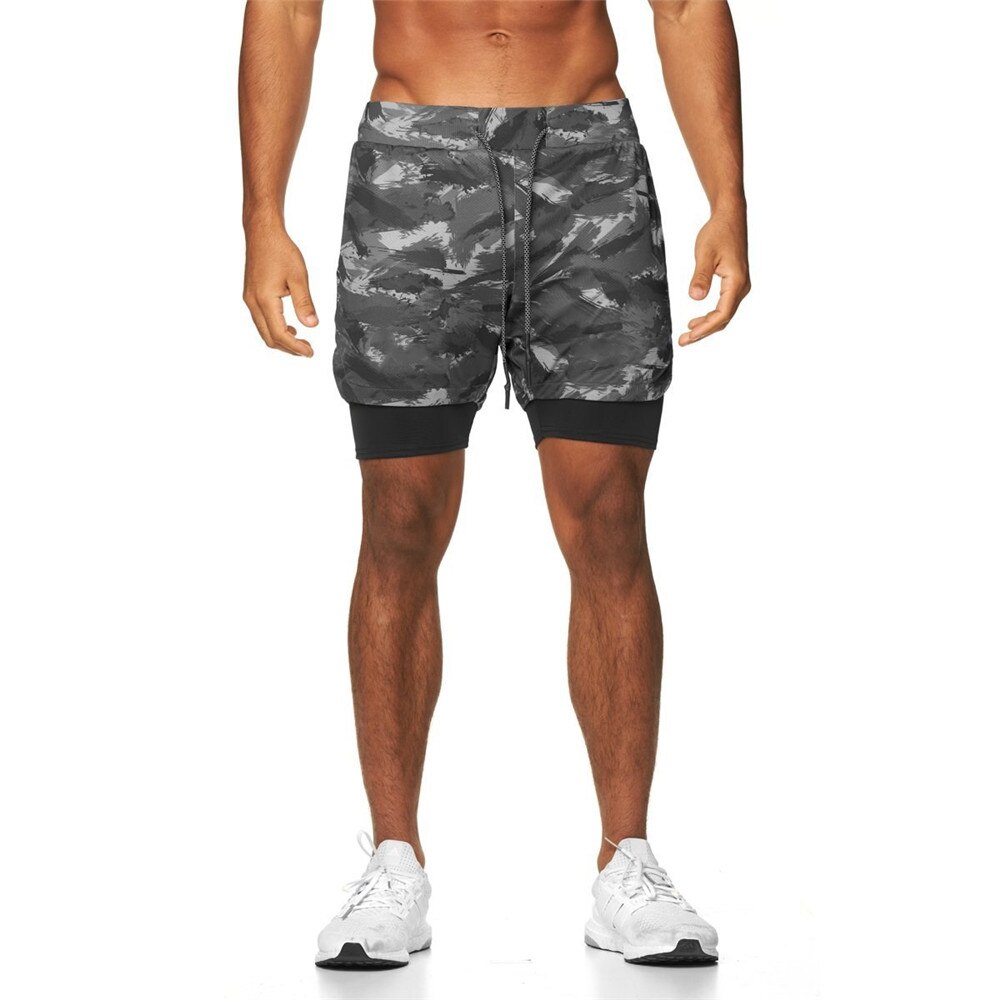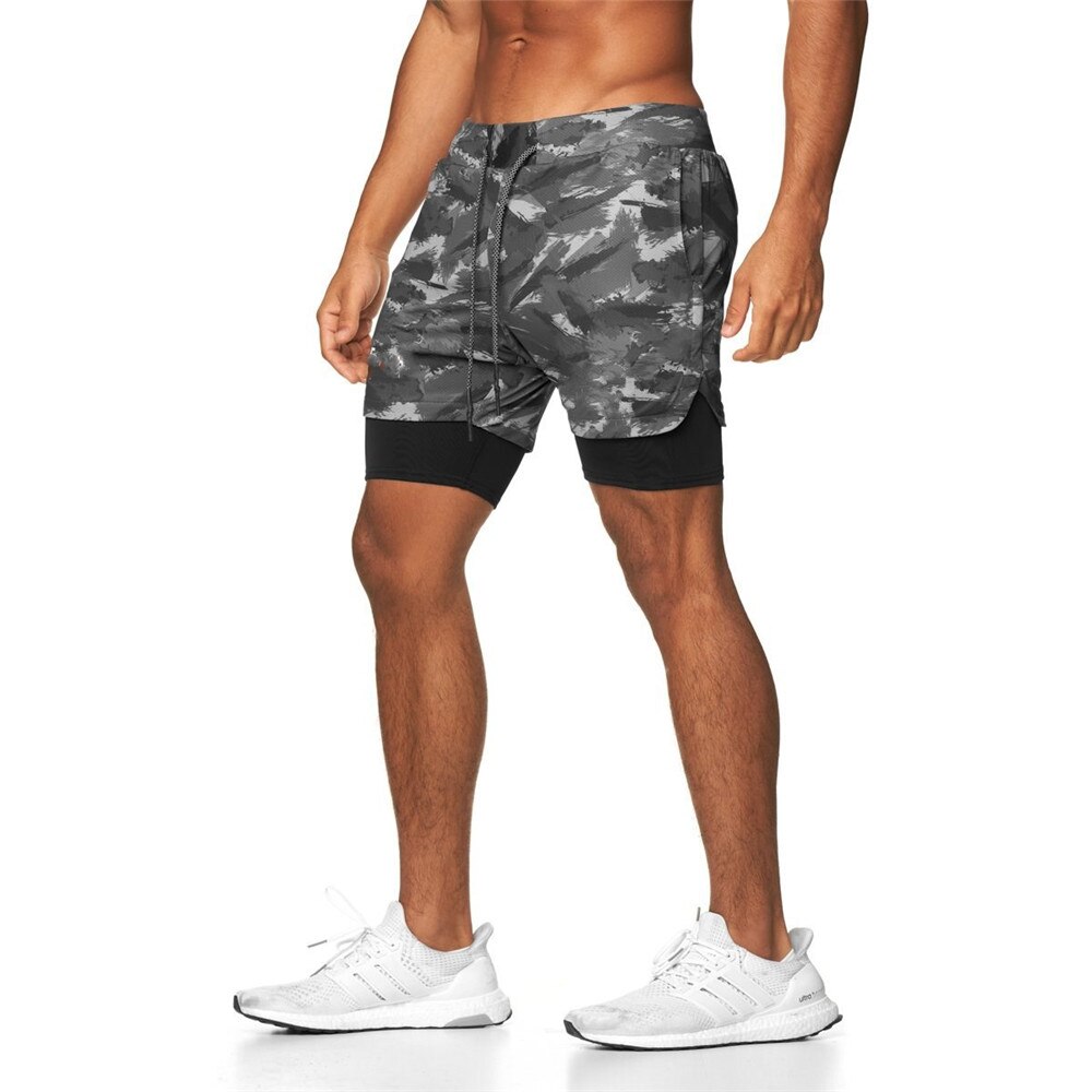 Men 2 in 1 Running Shorts Jogging Gym Fitness Training Quick Dry Double layer Short Pants Male Summer Sports Workout Bottoms