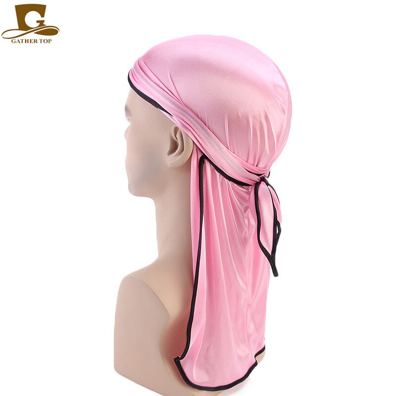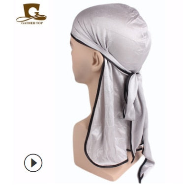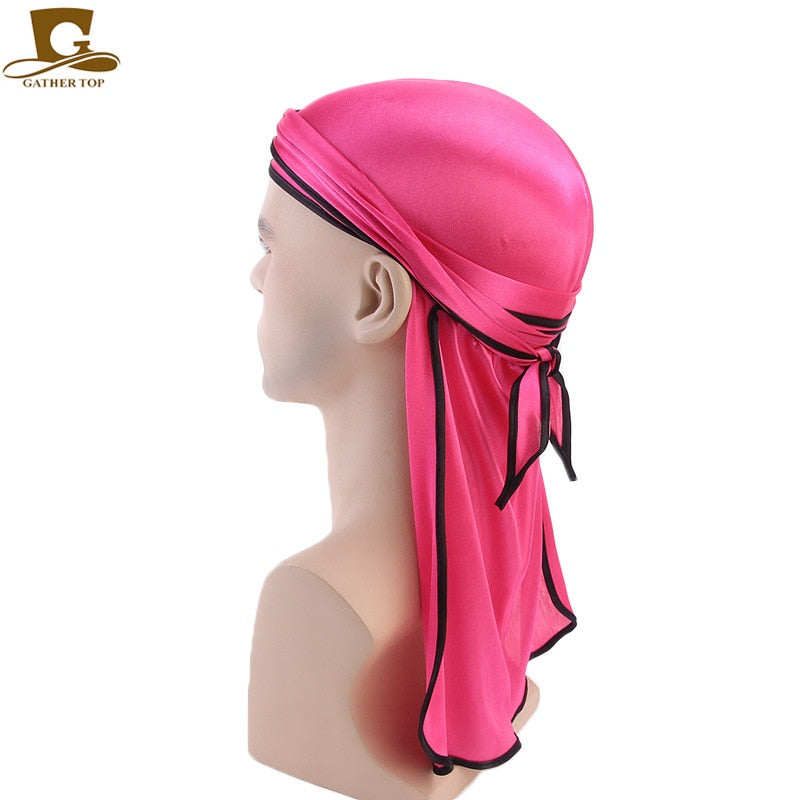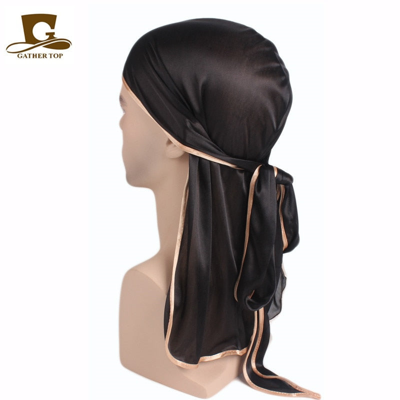 Men's Silky Durags Bandanas Turban hat Wigs Doo Men Satin Durag Biker Headwear Headband Hair Accessories Extra Long Tail Du-Rag