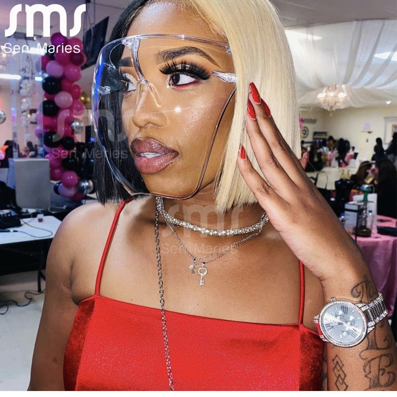 Our face shield glasses are not only fashionable, but also offer optimal protection for women. With a goggle-style design, these glasses provide full coverage and shield your eyes from any potential harm. Whether you're out in the sun or in a dusty environment, these glasses will keep your eyes safe from UV rays, dust particles, and debris.