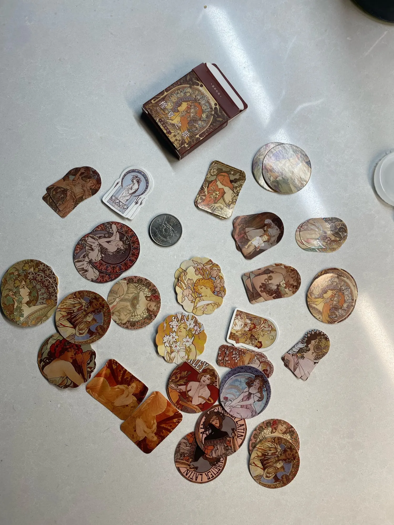 46pcs/pack Mucha Painting Paper Sticker Decoration Stickers Diy Ablum Diary Scrapbooking Label Sticker