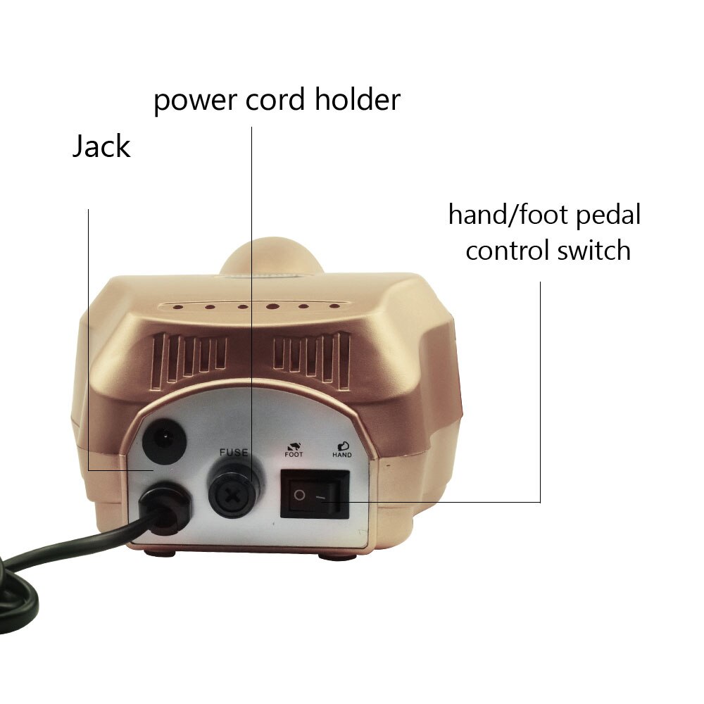 Crafted from high-quality plastic, this manicure machine features an ergonomic aluminum alloy handle that ensures a comfortable grip and optimal control during use. It comes with a variety of plug types (EU/US/AU/UK) to accommodate different power outlets, making it suitable for use worldwide. Rest assured, this Nail Drill Machine is certified by CE for its safety and quality standards.