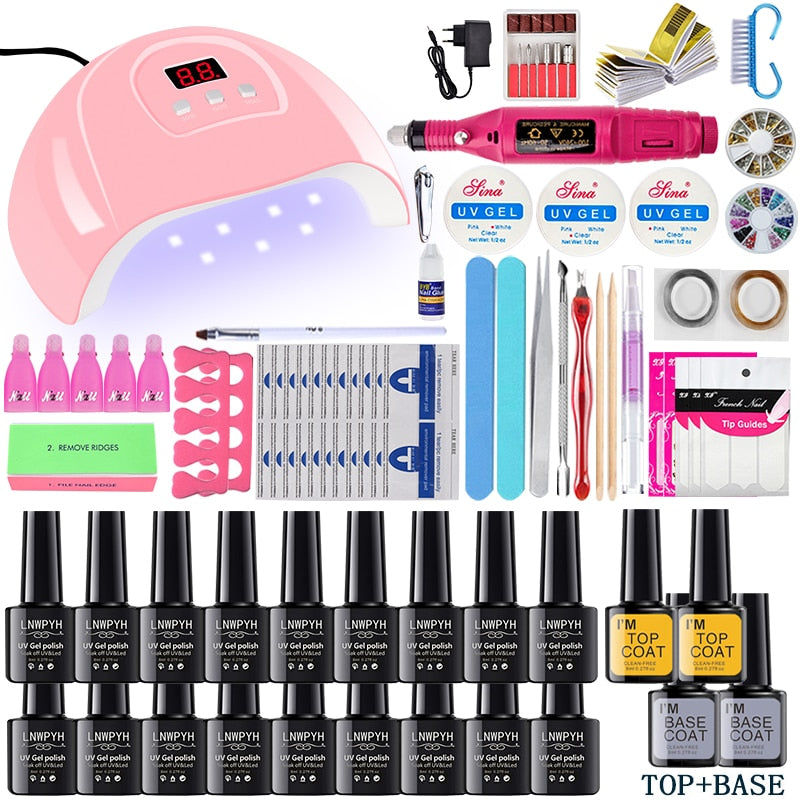 Nail Set UV LED Lamp Dryer With 18/12 pcs Nail Gel Polish Kit Soak Off Manicure Tools Set electric Nail drill Nail Tools