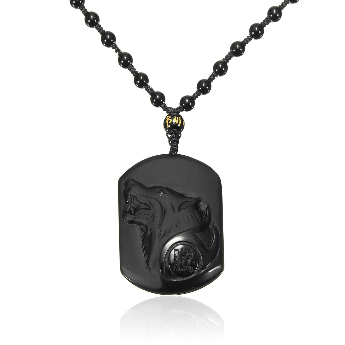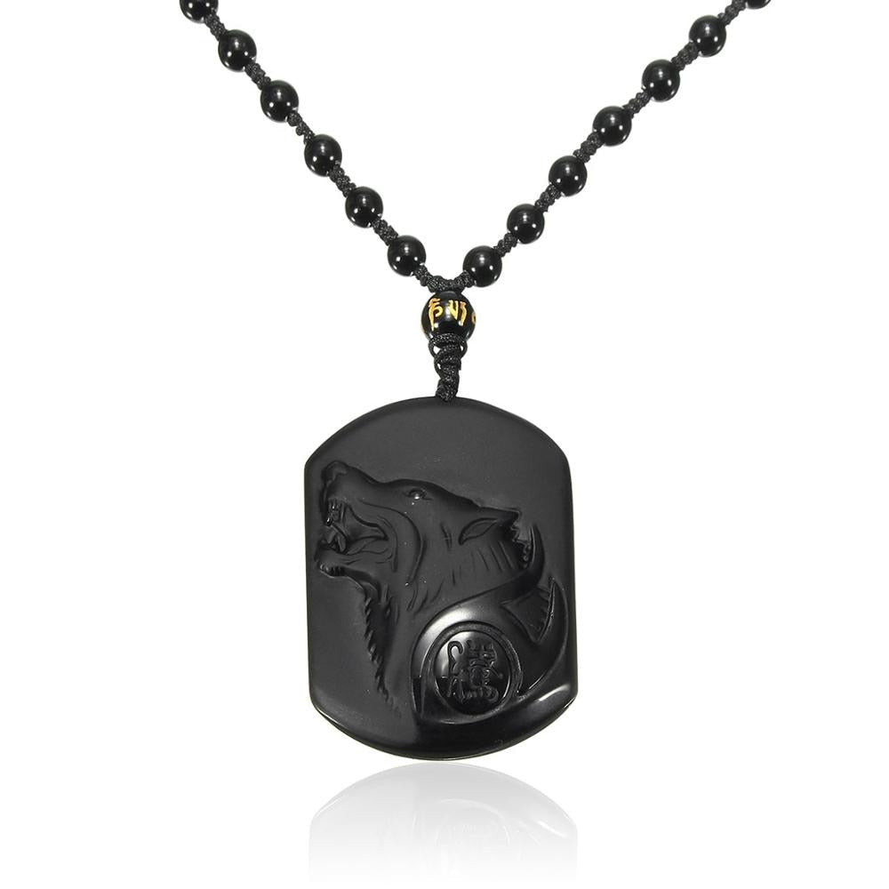 If you're looking for a stylish and meaningful piece of fashion jewelry, then this Natural Black Obsidian Carving Wolf Head Amulet Pendant is the perfect choice for you!