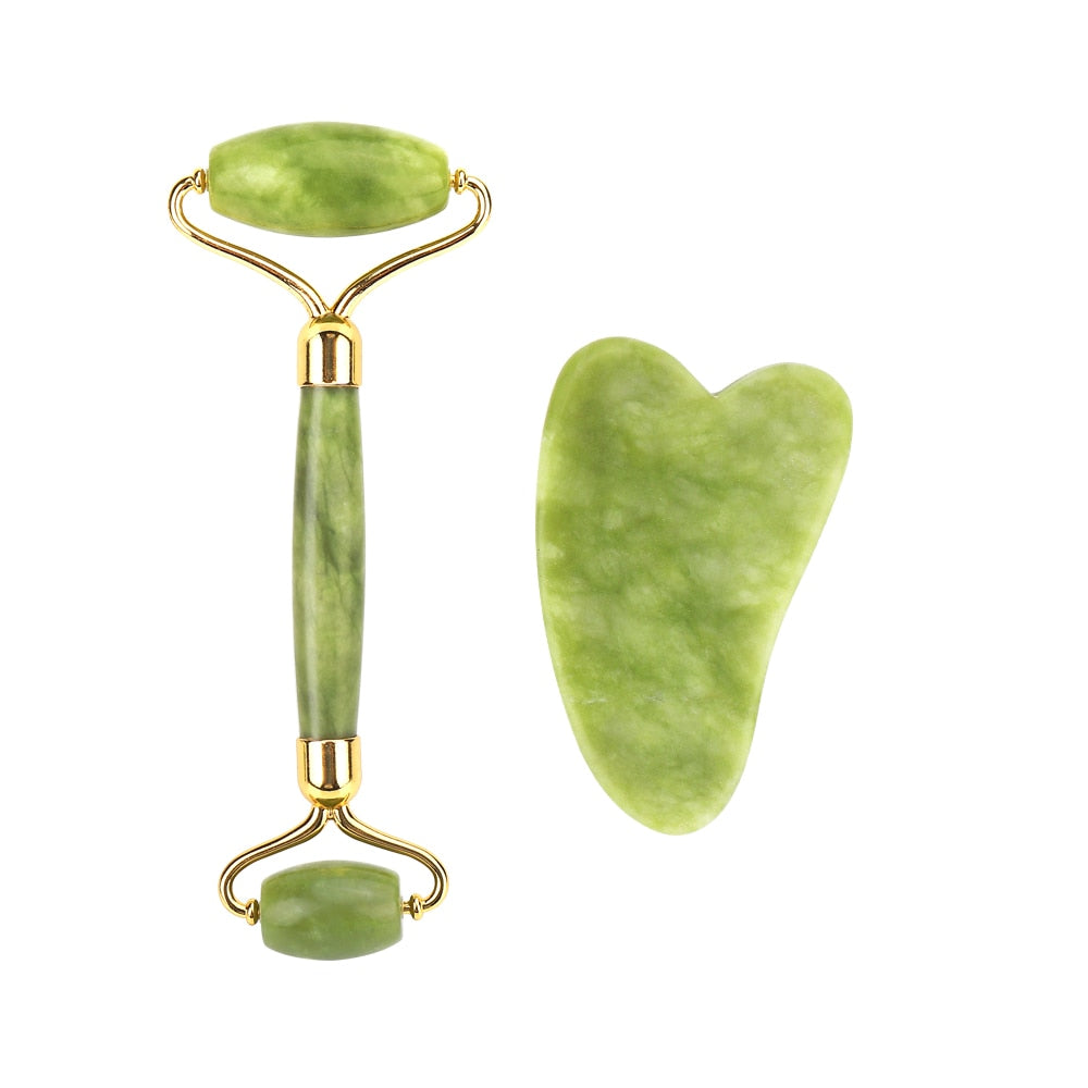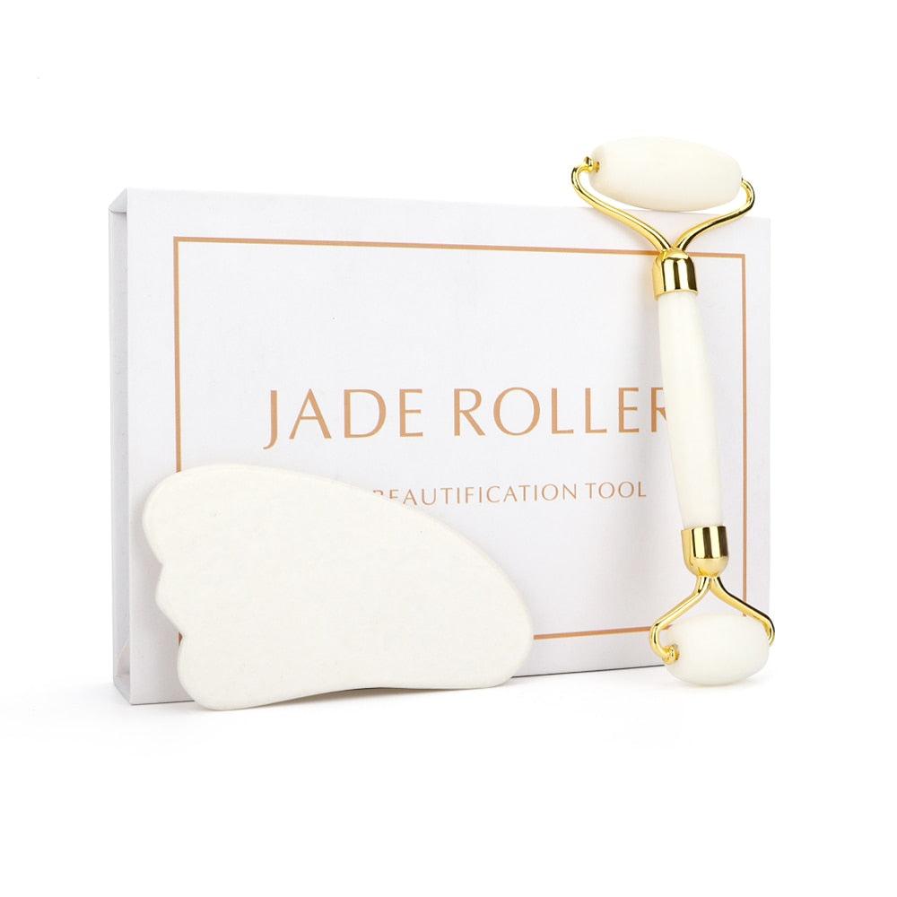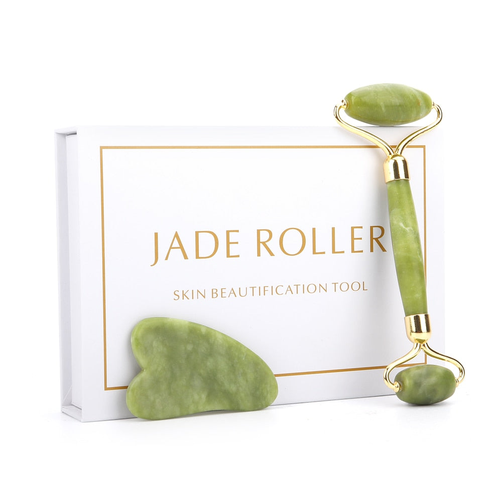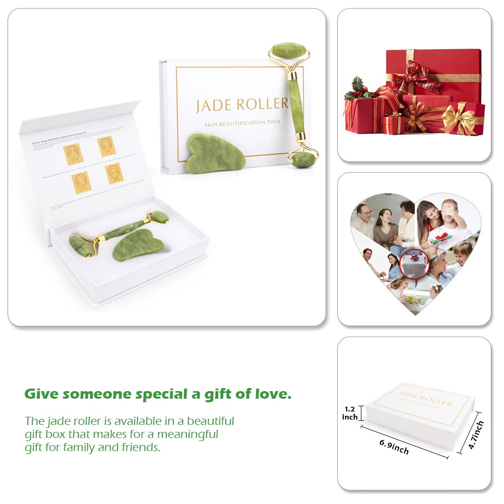Natural Facial Massager Face Roller Gua Sha Scraper Double Heads Jade Stone Roller Skin Care Rose Quartz Massage for Face Body