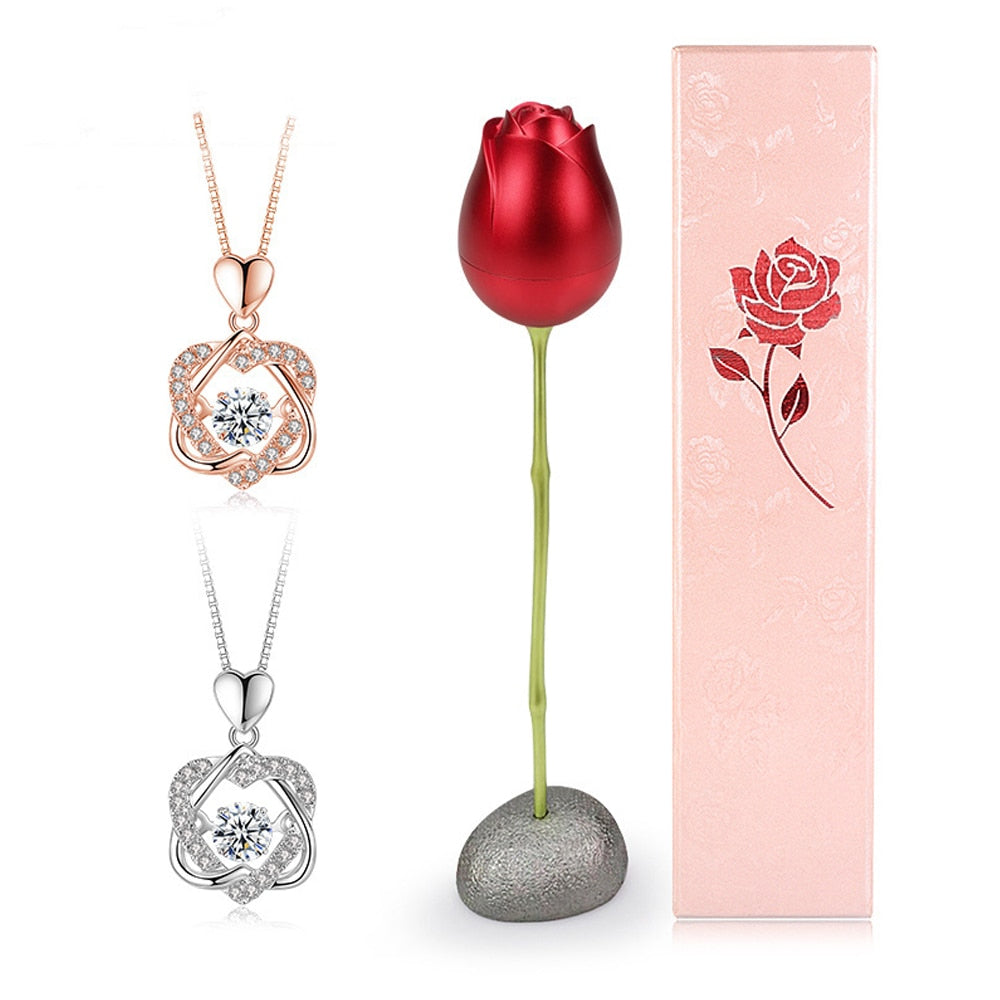 New Cubic Zircon Round Beating Heart CZ Star Pendant Necklaces for Women Rose Box Valentines Day Tanabata Jewelry Gift