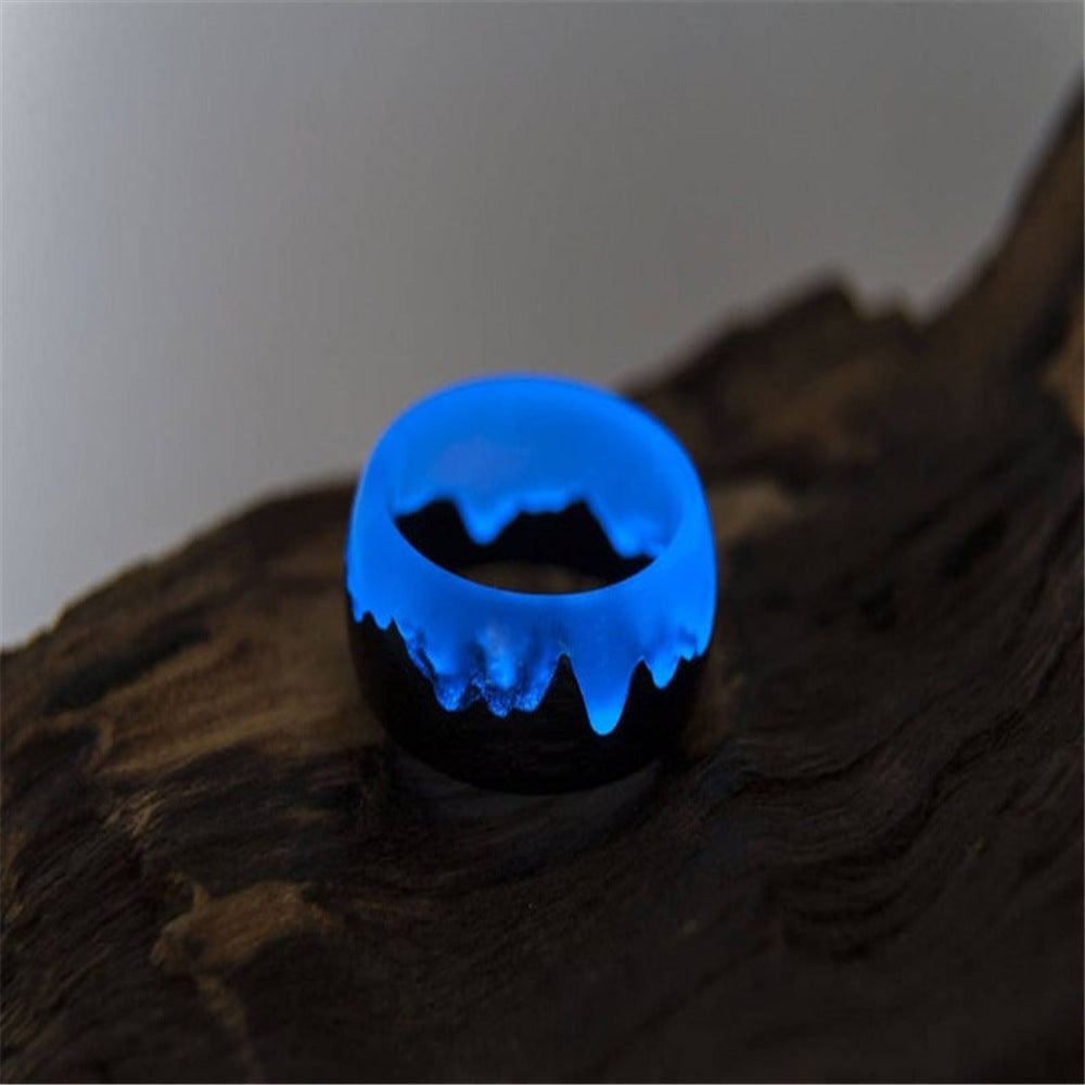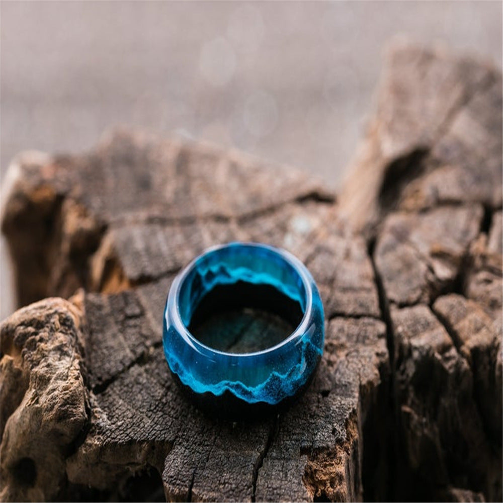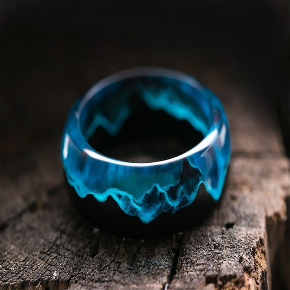 New Resin Wood Snowscape Starry Sky Aurora Personality Ring Fluorescent Secret Wood For Women Men Unusual Decoration Jewelry