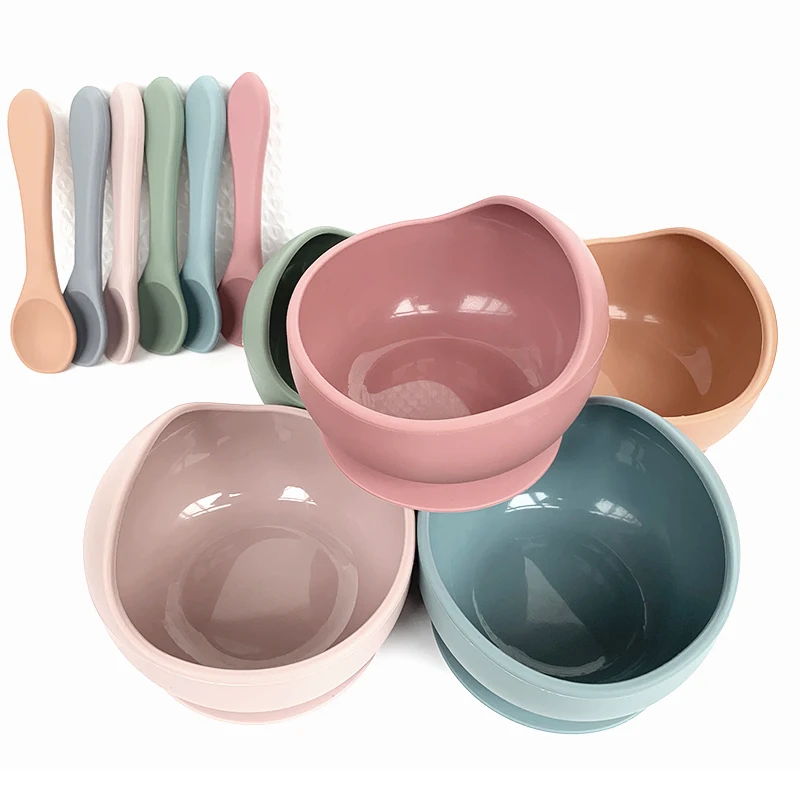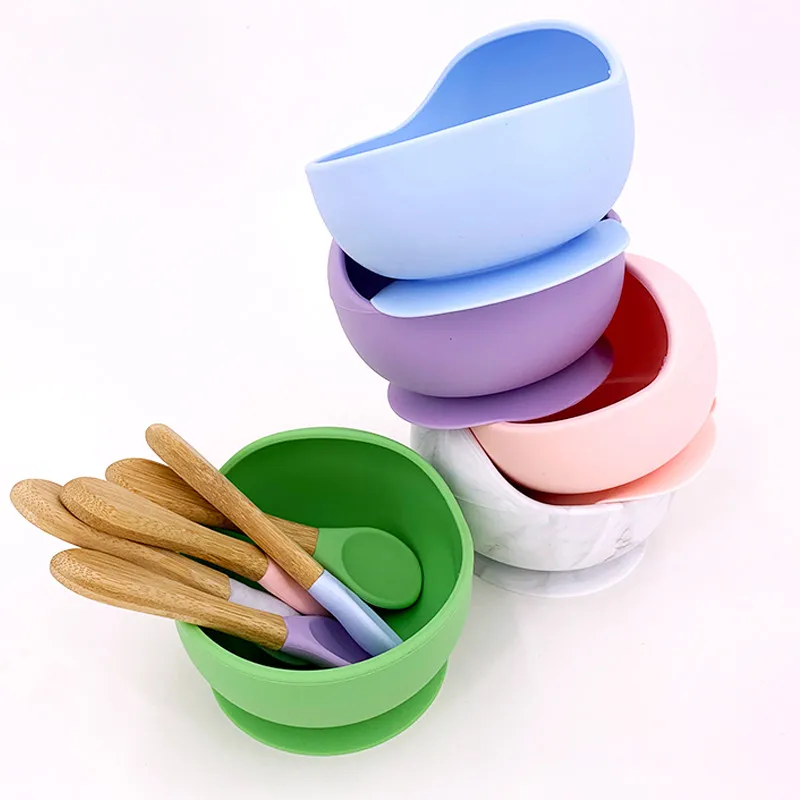 New Silicone Baby Feeding Bowl Tableware Waterproof Spoon Non-Slip Crockery BPA Free Silicone Dishes for Baby Bowl Baby Plate