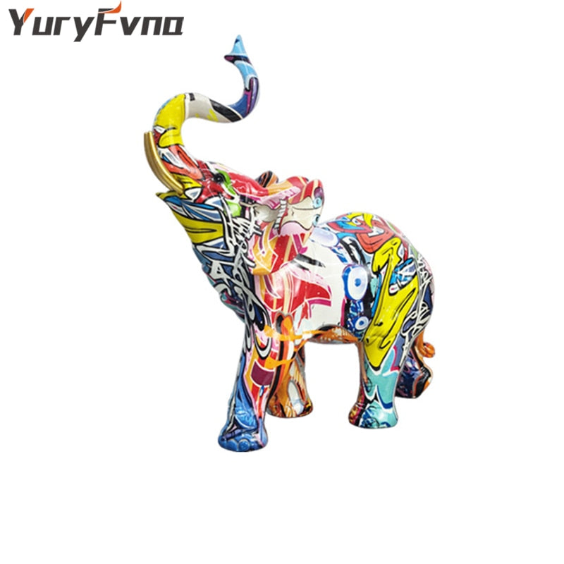 Nordic Painting Graffiti Elephant Sculpture Figurine Art Elephant Statue Creative Resin Crafts Home Decoration