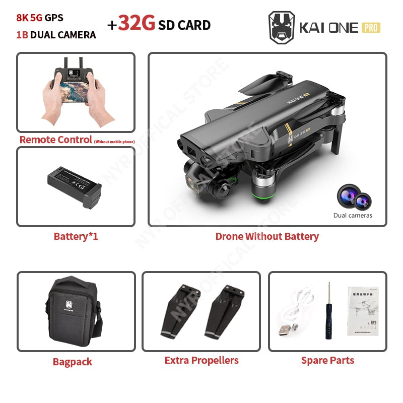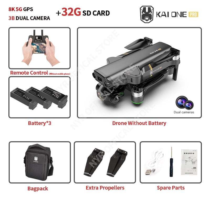 Introducing the new KAI ONE Pro Drone, a state-of-the-art quadcopter designed for professional aerial photography. With its 8k HD mechanical 3-axis gimbal dual camera and 5G Wifi connectivity, this drone is capable of capturing stunning footage from above. Whether you're a beginner or an experienced operator, the KAI ONE Pro is perfect for you.