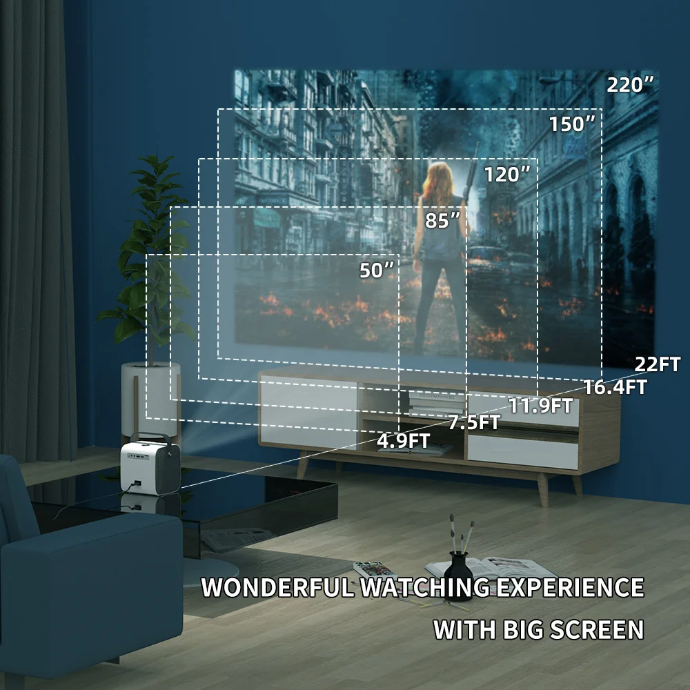 Do you want a massive home cinema on a small budget? Our Portable projector gives you the complete home cinema experience! This movie projector adopts the latest 4.3 LCD display technology with advanced LED light sources, featured with a high brightness rating of 8000L. 1080P Full HD resolution supported and 8000:1 contrast ratio ensures the picture is clearer and more delicate. Besides, the mini portable body design can be carried anywhere, perfect for backyard, travel or camping movie night, or video gaming. Buy now!