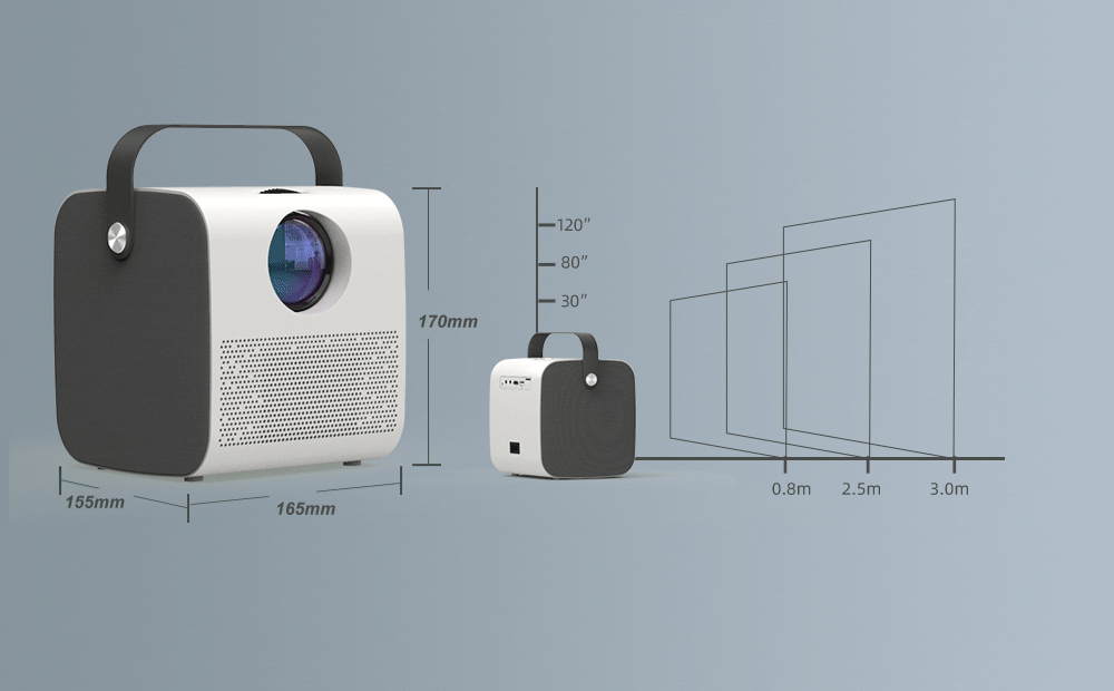 It's only 6 x 6.2 x 6.7 inches/ 2.86lb, but this compact projector can project up to 120 inches vivid display. Diffuse reflection technology can protect you from vision-impairing.