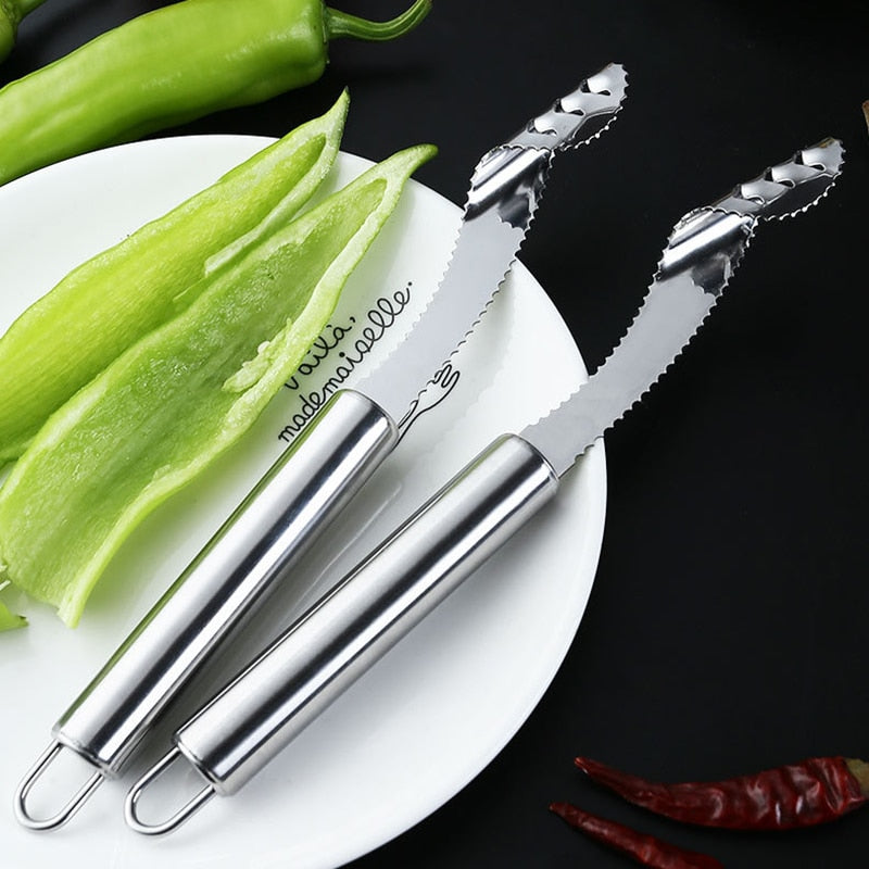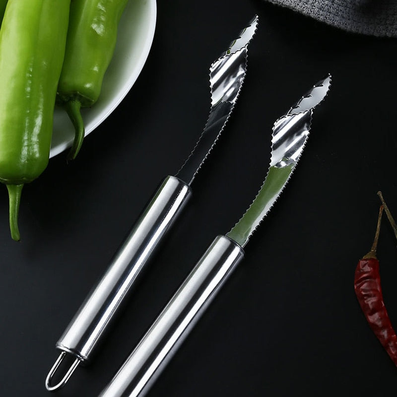 Deseeding peppers can be a real pain. You have to worry about cutting your fingers and getting chili oil on your skin. It's not fun! But with our stainless steel chili core chili seed remover, you no longer have to worry about cutting your hands or burning your skin with chili oil. It's simple to use - just cut off the top of each pepper with the easy-to-use tool and then remove all the seeds. It only takes a few seconds!