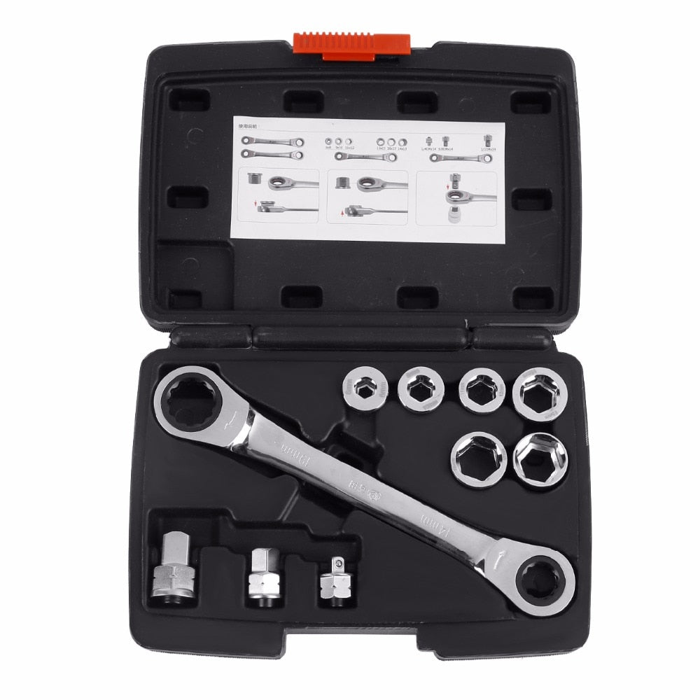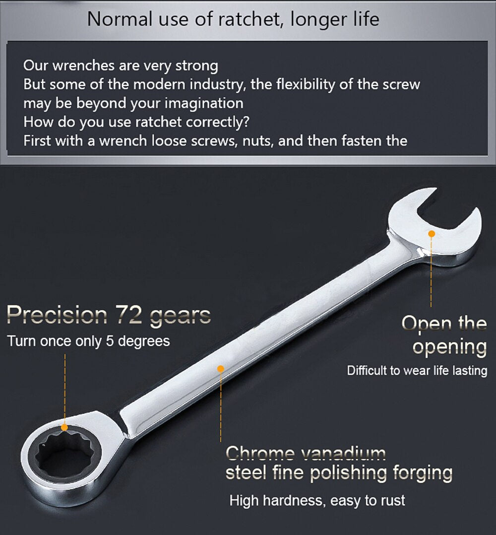 This Ratchet Combination Wrench Set is the perfect addition to any mechanic or DIY enthusiast's tool collection. Made from high-quality chrome vanadium steel, these wrenches are built to last and provide reliable performance for all your repair needs. With double ends and multifunctional features, this set of wrenches is versatile enough to tackle any job. Whether you're working on your car, bike, or other machinery, these wrenches are designed to make your job easier and more efficient. Plus, with their explosion-proof design, you can rest assured that you're using safe and reliable tools. Don't settle for anything less than the best - choose this Ratchet Combination Wrench Set for all your repair needs.