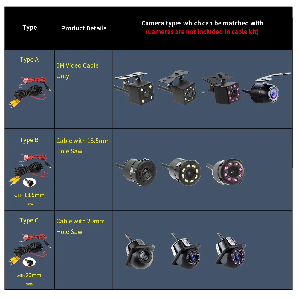 Reverse Camera Video Cable for Car Rear View Parking Universal 6M Wire Match with Multimedia Monitor with Power Cable