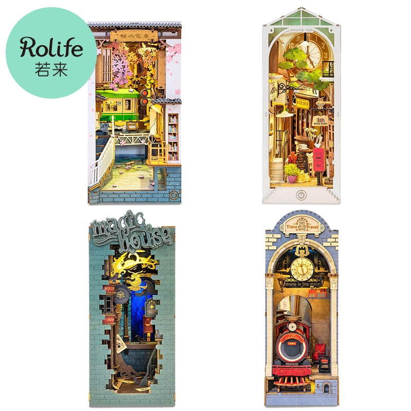 Four Kinds DIY Book Nook Stories in Books Series Wooden Miniature House with Furniture Doll House Kits Toy TGB