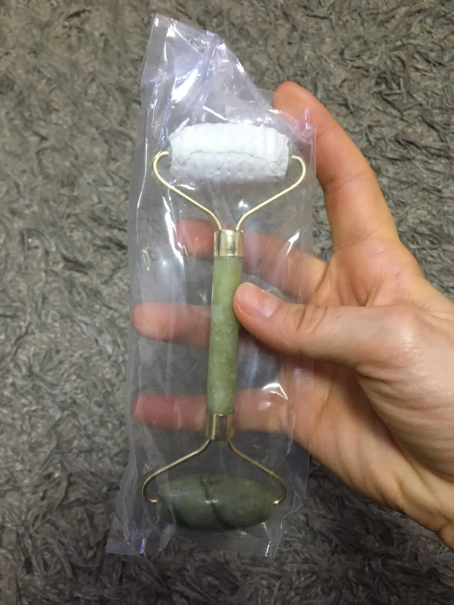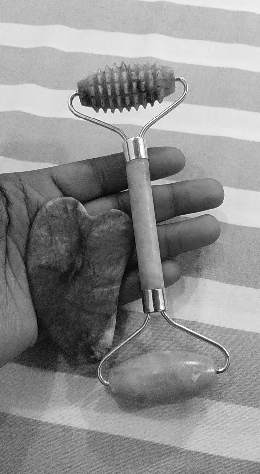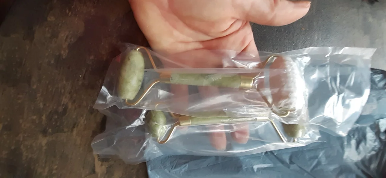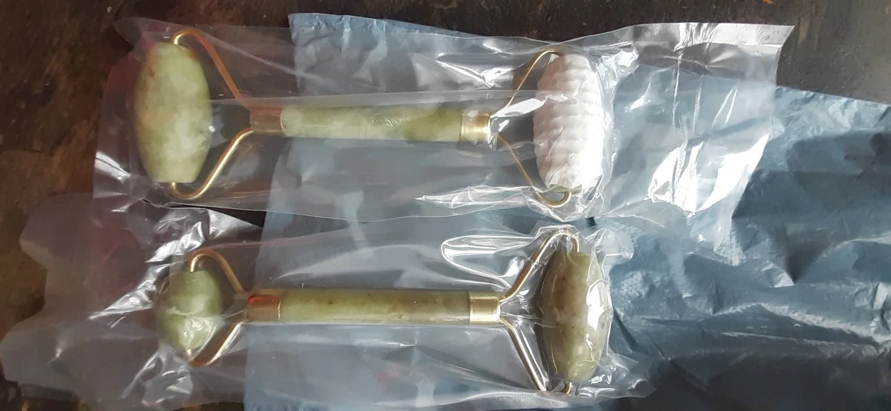 - inside vacuum package: stone jade roller kit
