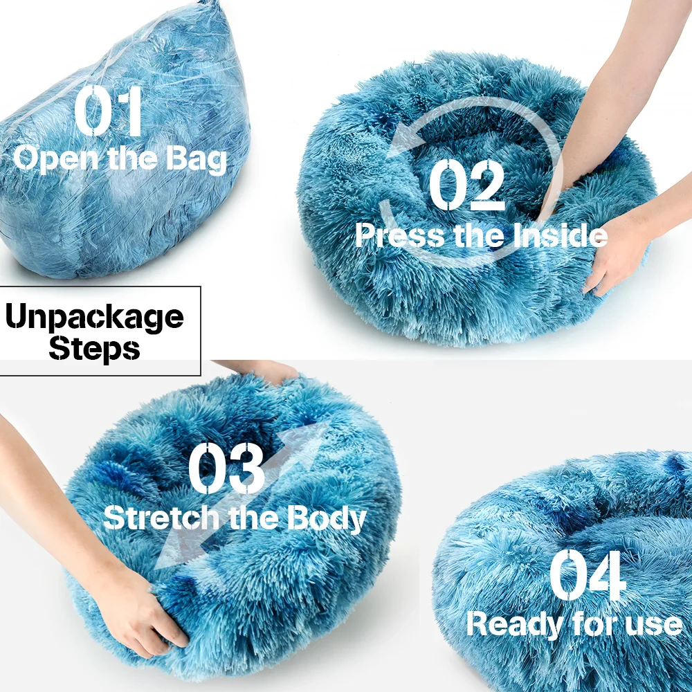 · 【COMFORTABLE】: Spring Blossoms donut pet bed, designed for dogs/cats who love to curl up. Longer and thicker shag vagan fur feels like mommy's fur, providing Pets with secured feelings and gives them comfort sleeping environment.