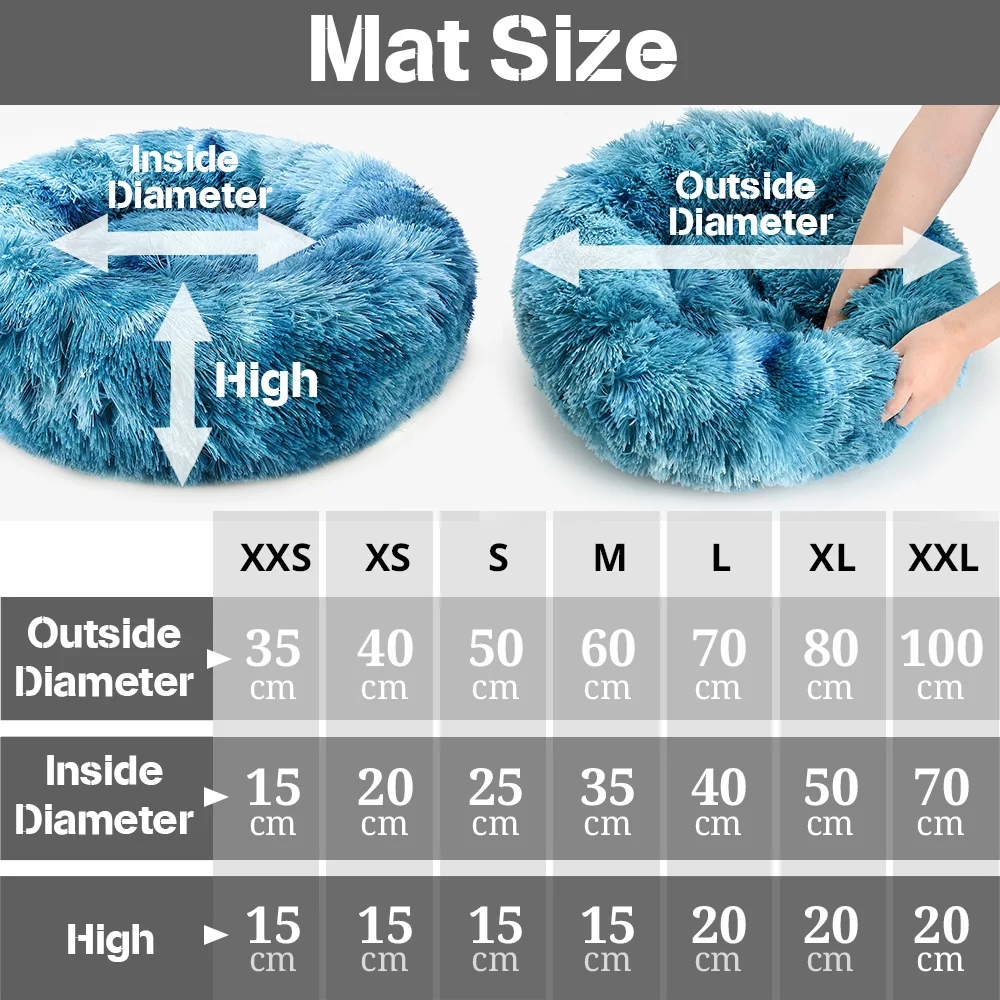 · 【VALID HEAD & NECK SUPPORT】: This Pets round clearance mat is soft trim on the inside, donut shape with warm fur, surrounding bolster to support our friends head and neck.