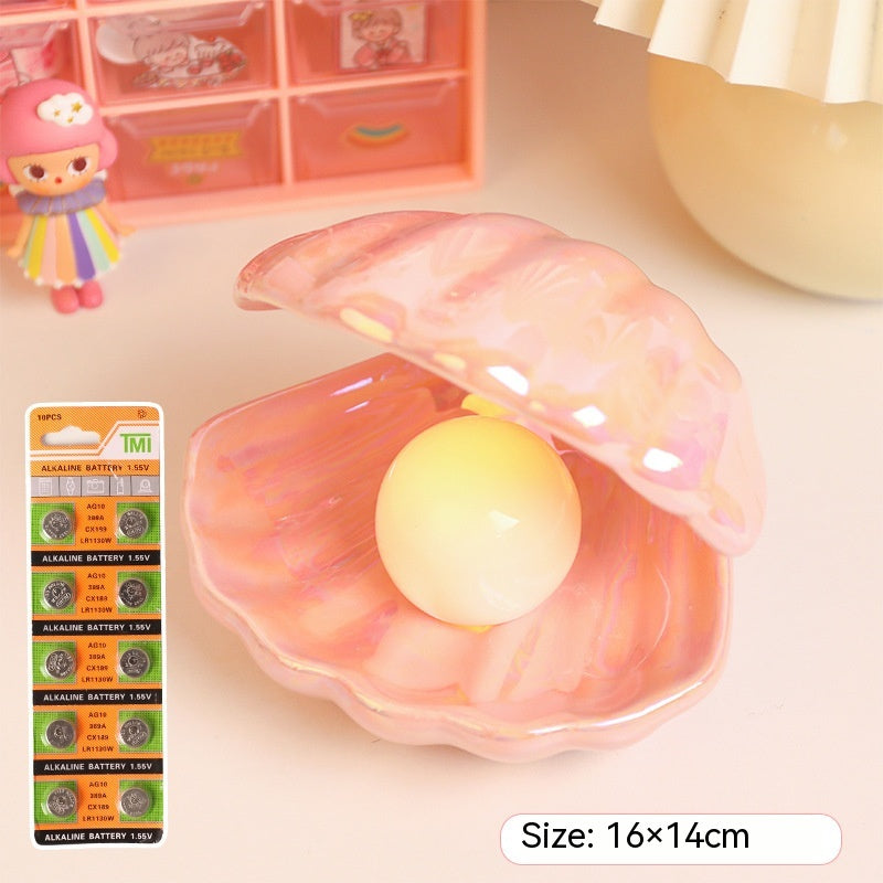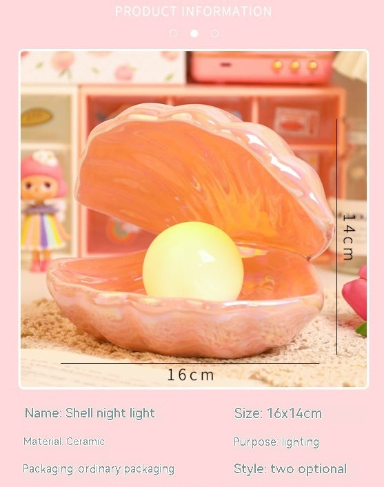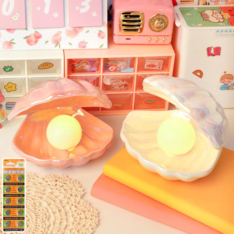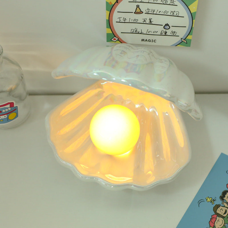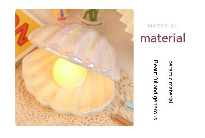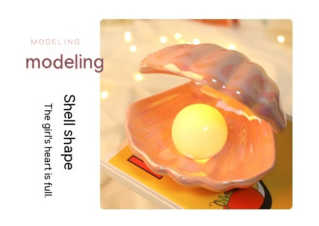 Shell Small Night Bedroom Bedside Internet Hot Girlish Dream Pearl Ceramic Lamp Desktop Decoration