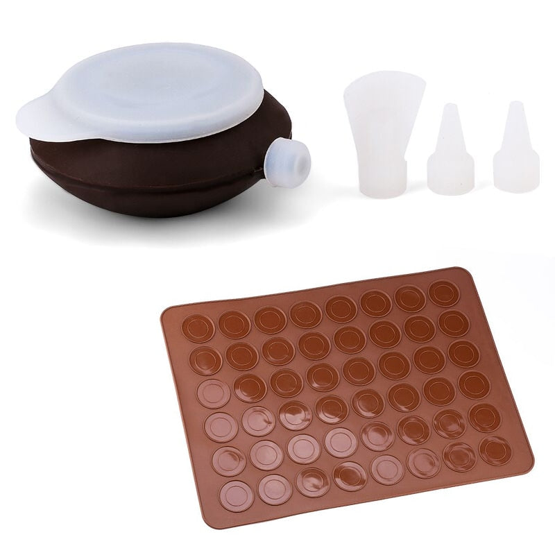 Not only is this Silicone Macaroon Baking Mold Pot Sheet Mat Nozzles Set practical and functional, but it is also visually appealing. The coffee color adds a touch of sophistication to your kitchen. The silicone material is durable and long-lasting, ensuring this kit will be a staple in your baking arsenal for years to come.