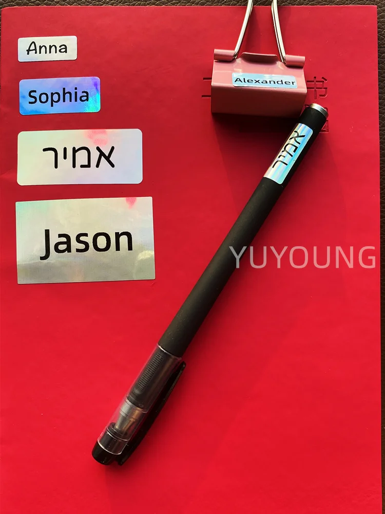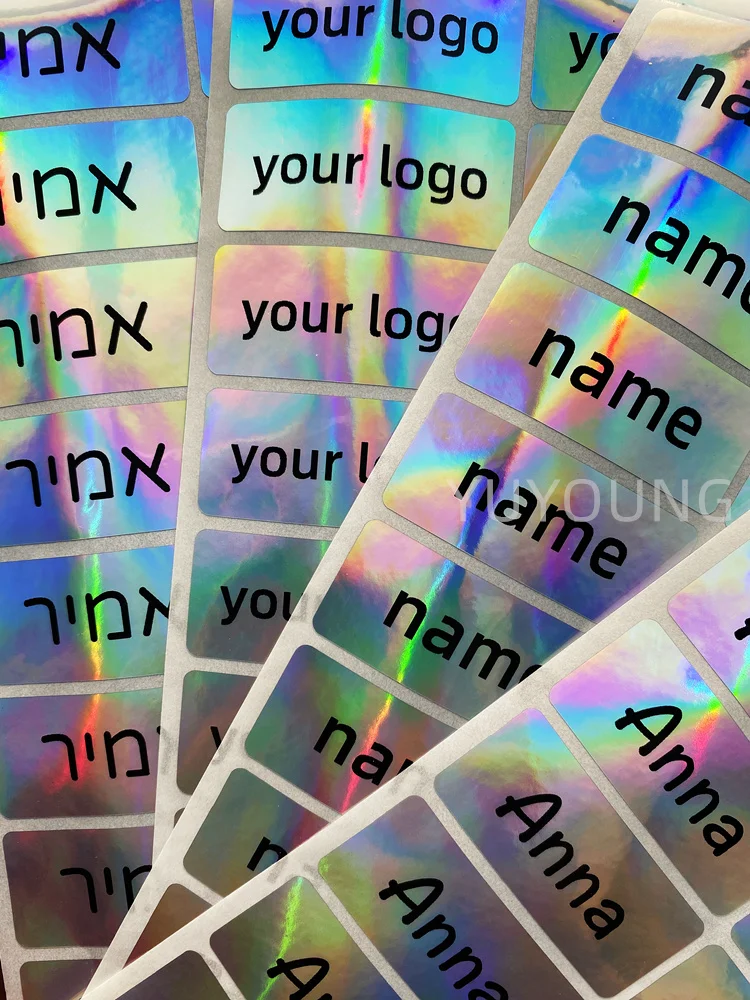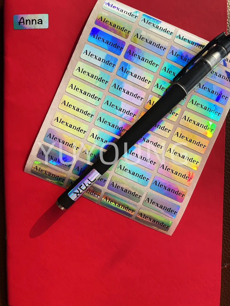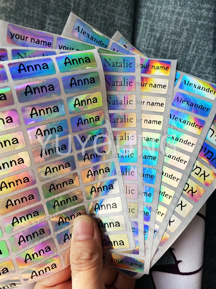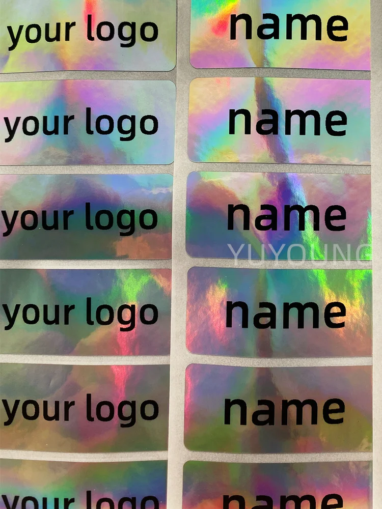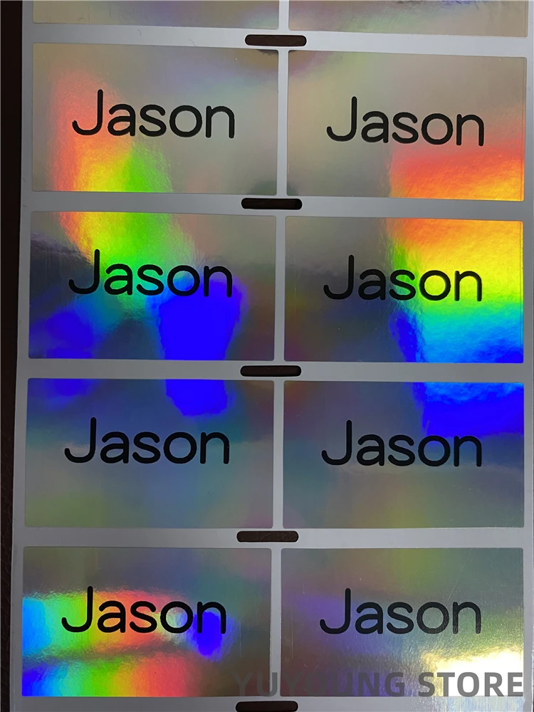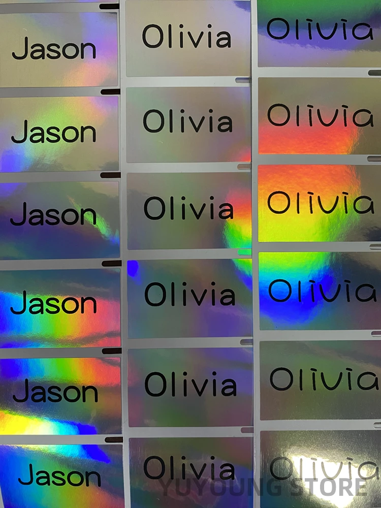 100 Pieces big size 50x30mm(1.96x1.18in) Silver Laser Personalized Tag Stickers Customize Waterproof custom for logo/kids/Manicure