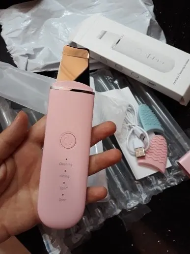 With multiple functions, including skin tightening, dead skin removal, anti-wrinkle, and lifting, this machine-made tool is perfect for anyone looking to improve the overall health and appearance of their skin. The Ultrasonic Skin Scrubber uses ION+ technology, ultrasonic waves, and vibration massage to effectively remove impurities, blackheads, and excess oil from your pores.