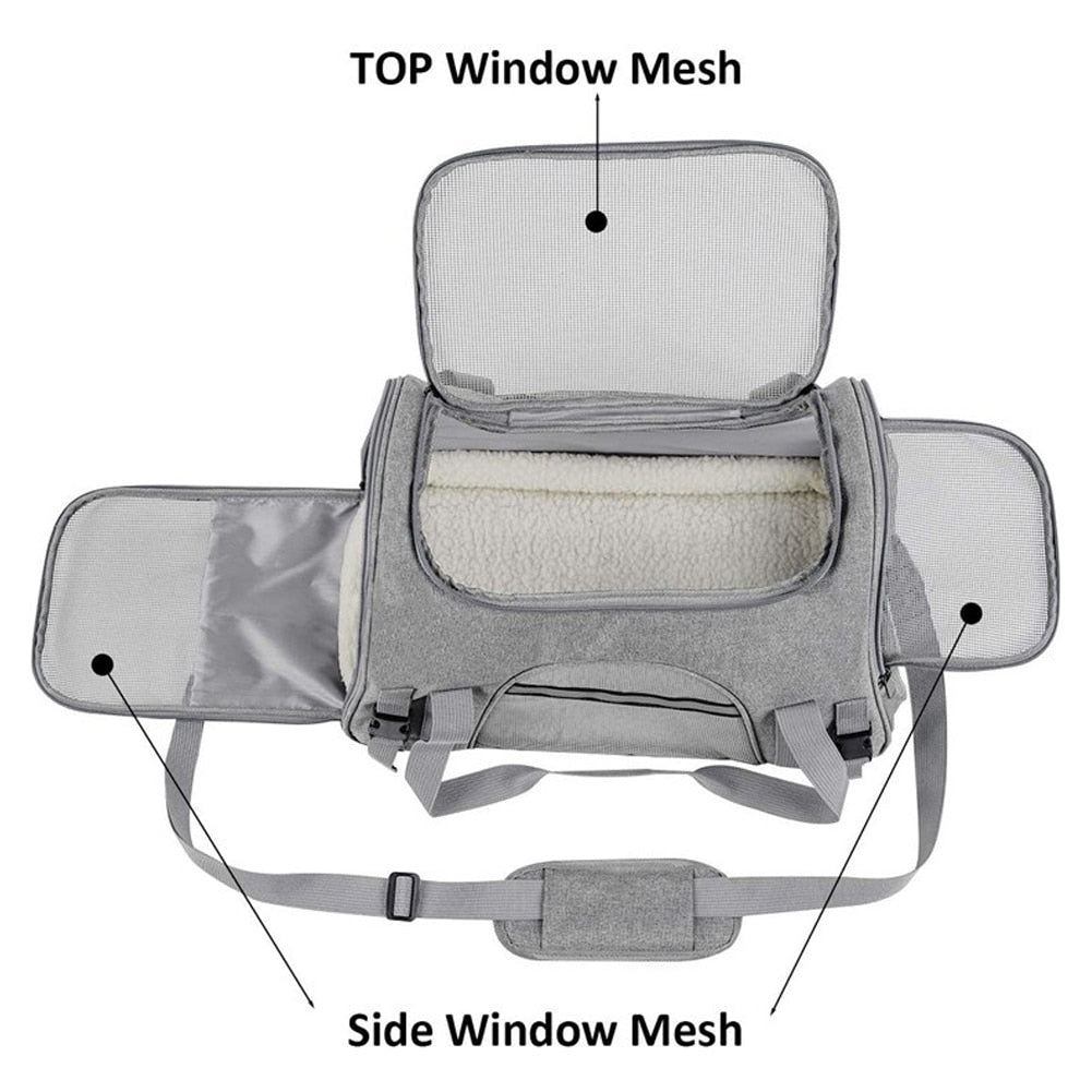 Soft Pet Carriers Portable Breathable Foldable Bag Cat Dog Carrier Bags Outgoing Travel Pets Handbag with Locking Safety Zippers