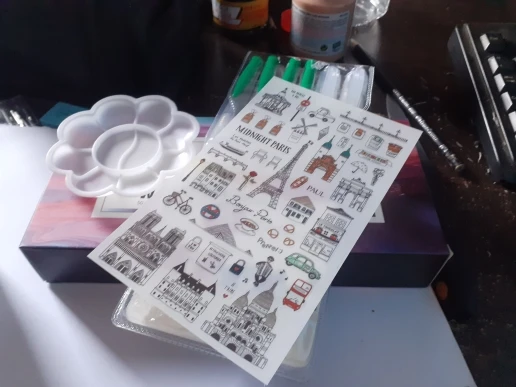 We placed a semi-transparent flake between the two layers of paint to prevent paint contamination, and it can also be used as a color palette