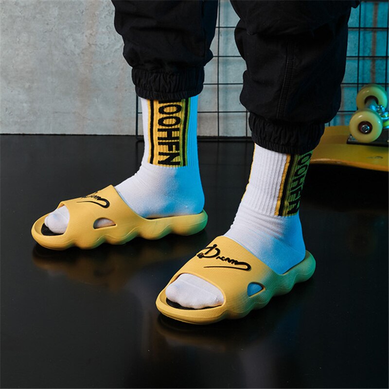Looking for the perfect summer slippers that can take you from indoors to outdoors with ease? Look no further than these Summer Men Slippers Eva Indoor Outdoor Unisex Platform Slippers Non-slip Bathroom Slides Couples Home 36-45 Sandals.