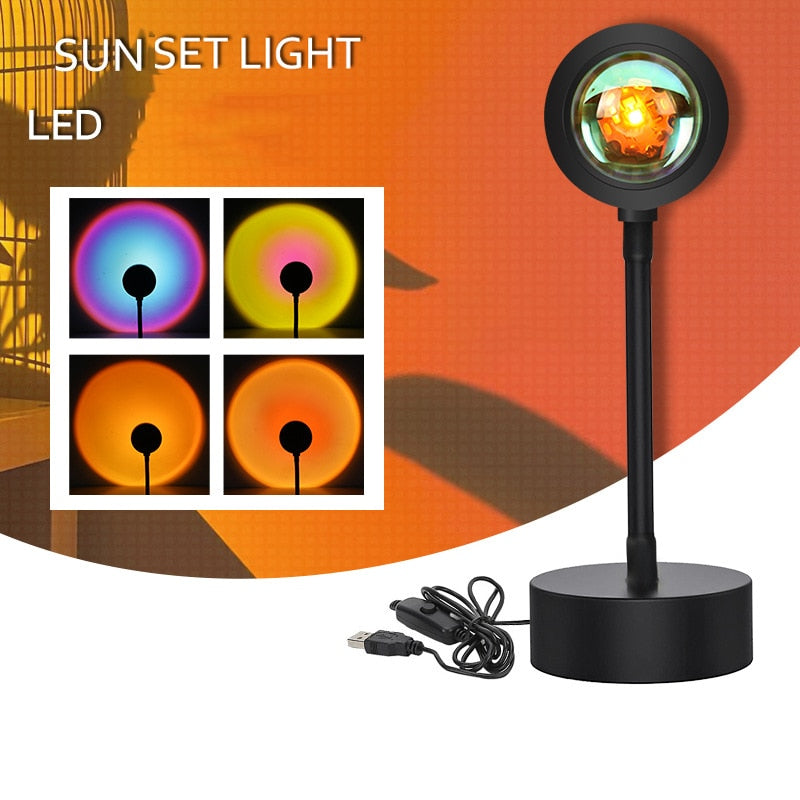 Sunset Lamp Projector Rainbow Atmosphere Led Night Light for Home Bedroom USB Lamp Live Room Photography Photo Wall Decoration