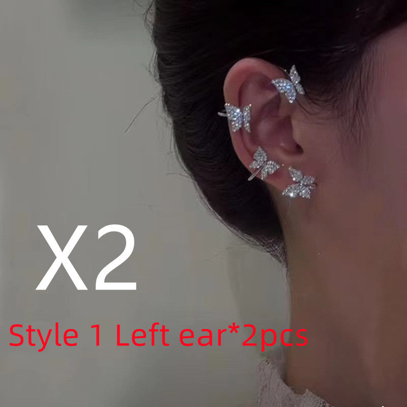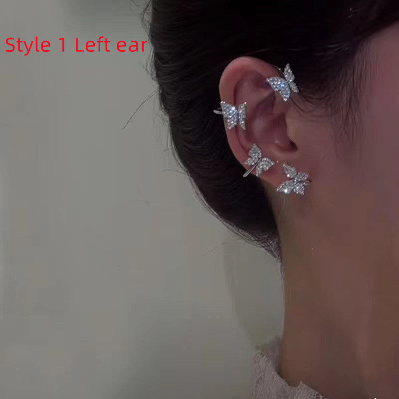 Super Flashing Diamond Earrings With Butterfly Ear Clip Earrings All-in-one Earrings