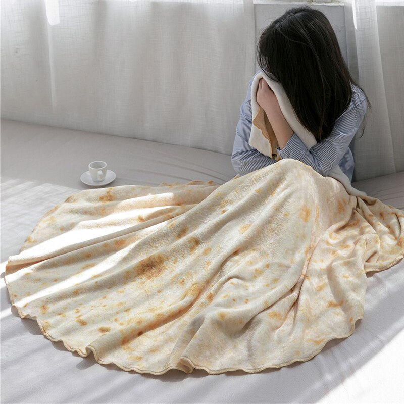 Super Soft Warm Flannel Burrito Blankets 280Gsm Round Shape Airplane Travel Throw Coral Fleece Tortilla Nap Wrap Blankets