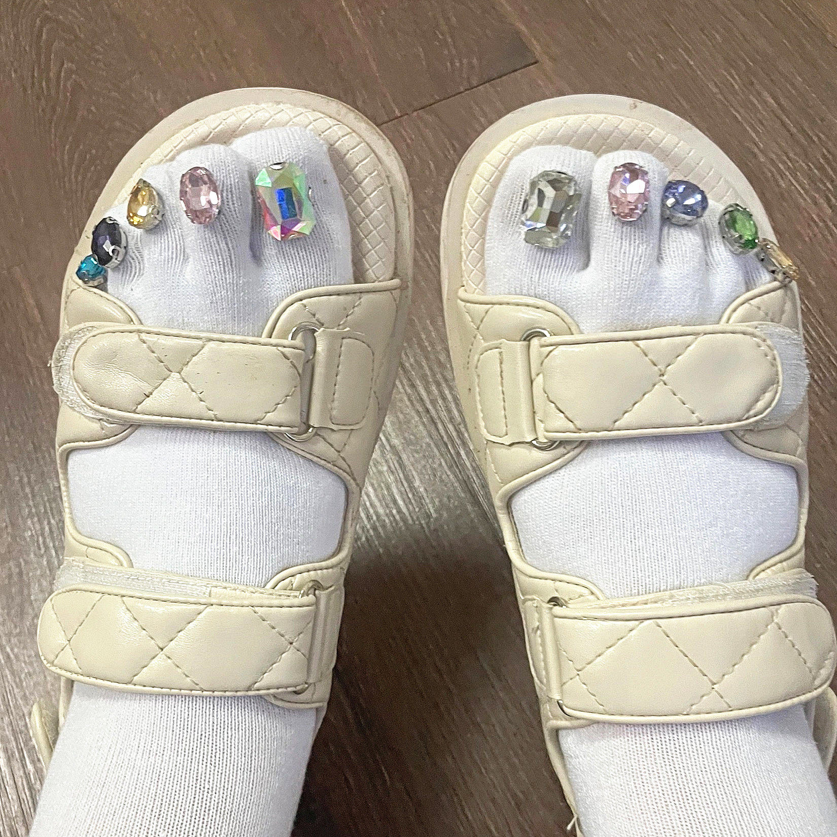 Introducing our unique and stylish Toe Thin Sandals With Diamond Five-finger Socks Crystal Split Toe! These one-of-a-kind sandals are designed for the fashion-forward female who wants to stand out from the crowd.