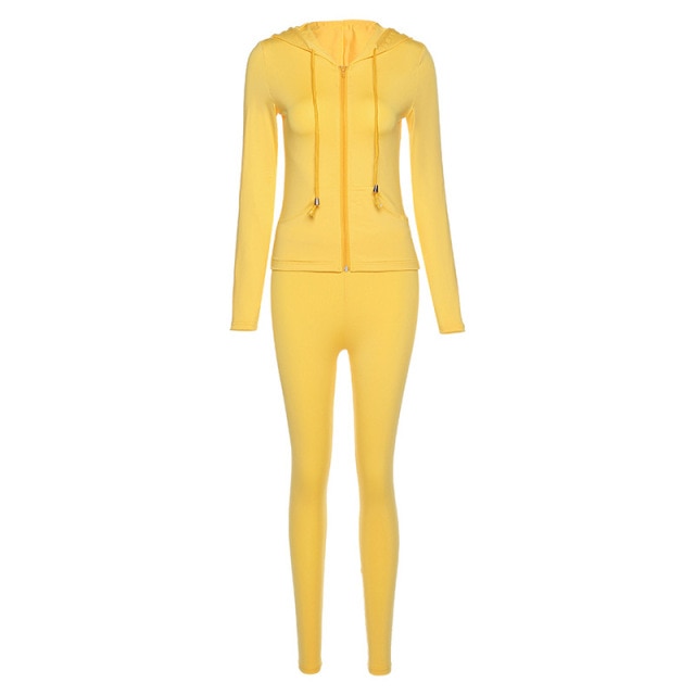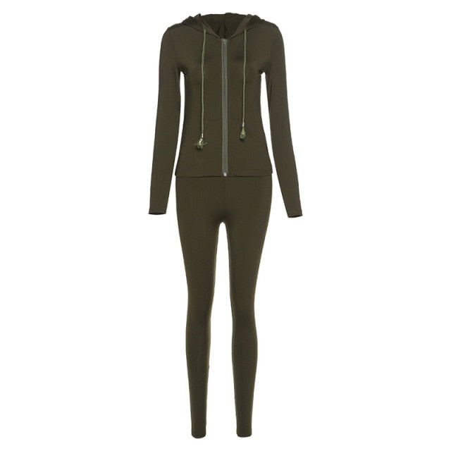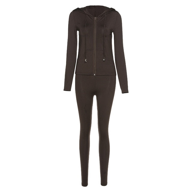 Tracksuit Women 2 Piece Set Fitness Plain Color Zipper Up Hoodies Skinny Leggings Sporty Sweatpants Matching Outfits Activewear