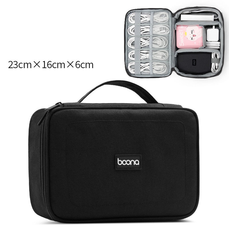 High capacity,store your various electronic accessories, like charger, wire, adapter, plug, headphone, external hard drive, mouse and other travel electronics