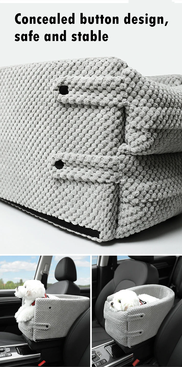 Looking for a safe and comfortable way to transport your small dog or cat while traveling? Look no further than our High Grade Portable Cat Dog Bed Travel Central Control Car Safety Pet Seat Transport Dog Carrier Protector! This specially designed pet seat is perfect for small pets, providing four-sided protection to reduce anxiety and bumpy rides caused by collisions with the seat. With a buckle closure design, your pet can easily enter and exit the seat, while a safety lanyard helps keep them stable during travel. Made with high-quality coral fleece material, this pet seat is both durable and comfortable. Hand washable for easy cleaning. Model number MM21080801. Get yours today and give your furry friend a safe and comfortable ride!