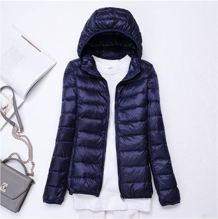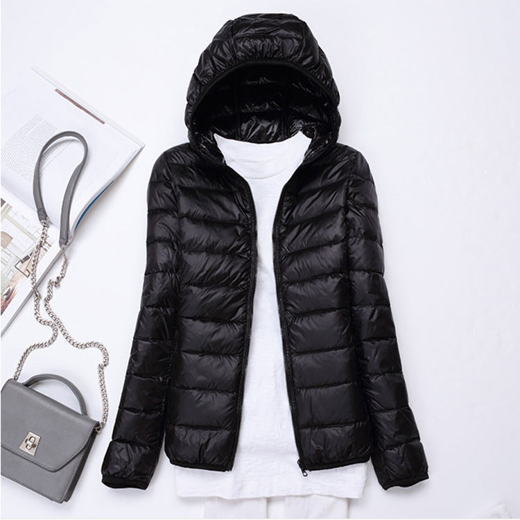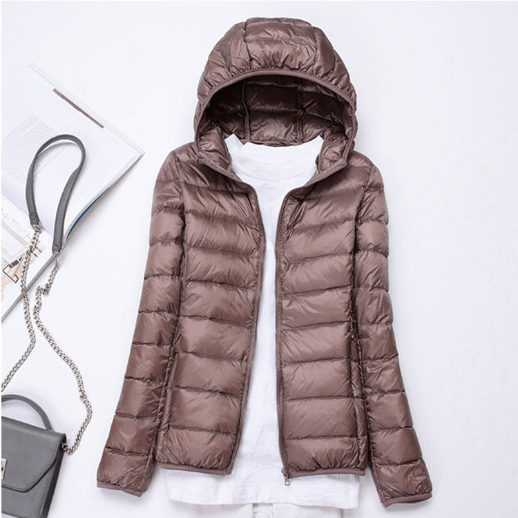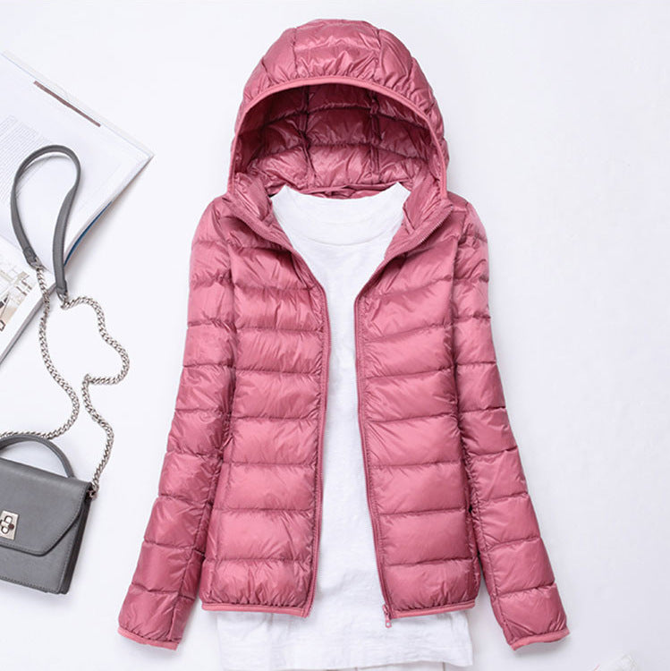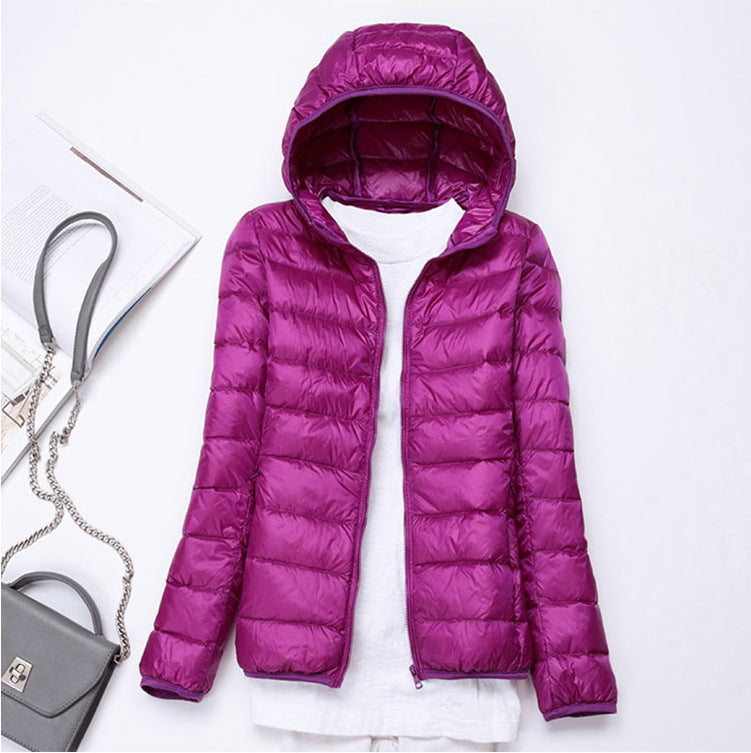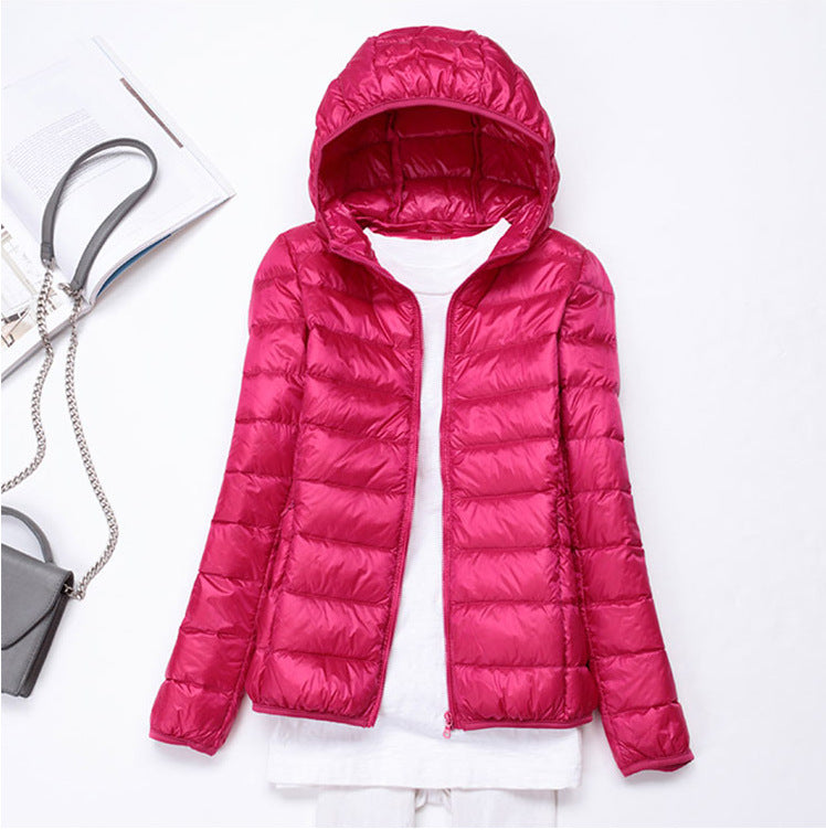 Ultra-light Women's Lightweight Stand Collar Hooded Down Jacket