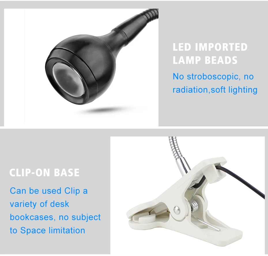DC5V USB LED Desk Lamp With Clip Flexible Table Lamp For Book Reading Study Office Bedside Work Children Night Light For Home