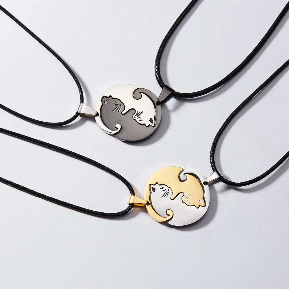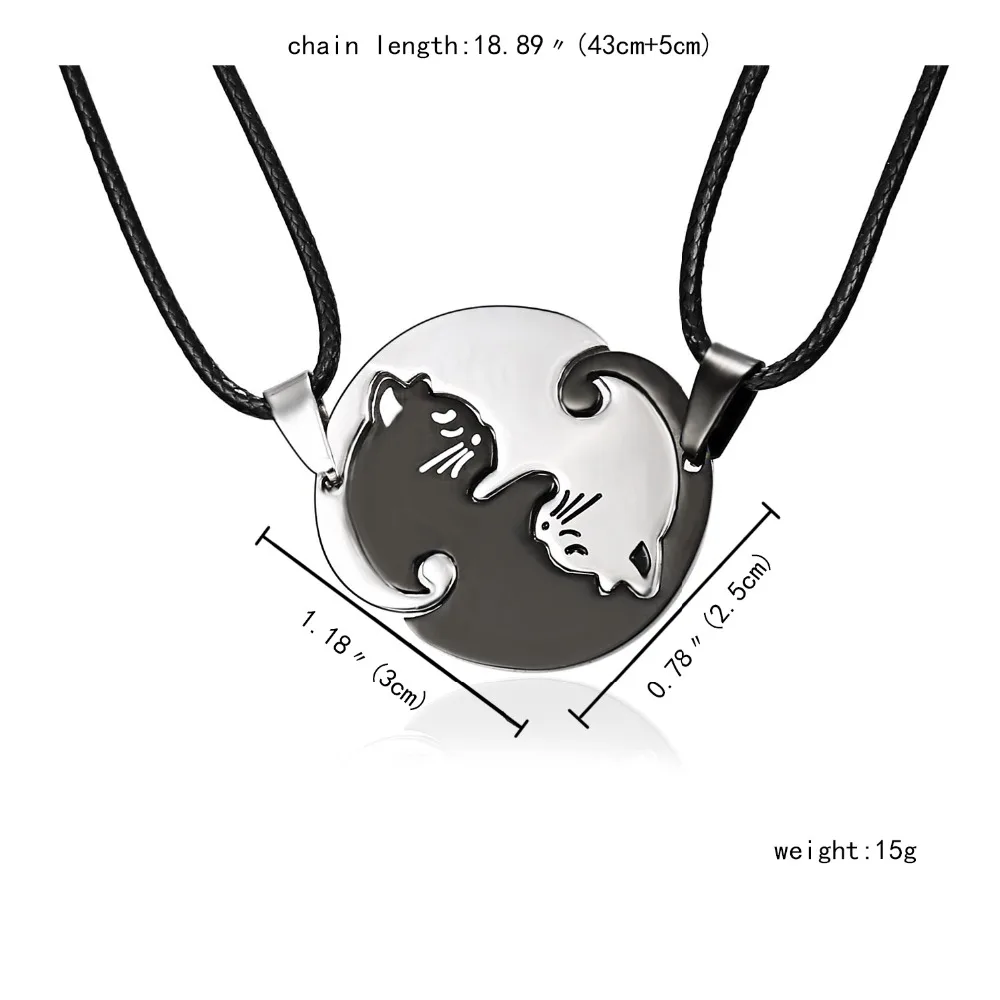 Vintage Black White Couple Necklace Top Quality Stainless Steel Pendant Necklace Friendship Jewelry For Men Women Lovers' Gift