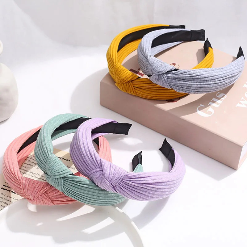 Women Bow Knot Hair Bands Knitted Wave Solid Color Wide Band Hair Hoop for Girls Headband Fashion Headwear Hair Accessories