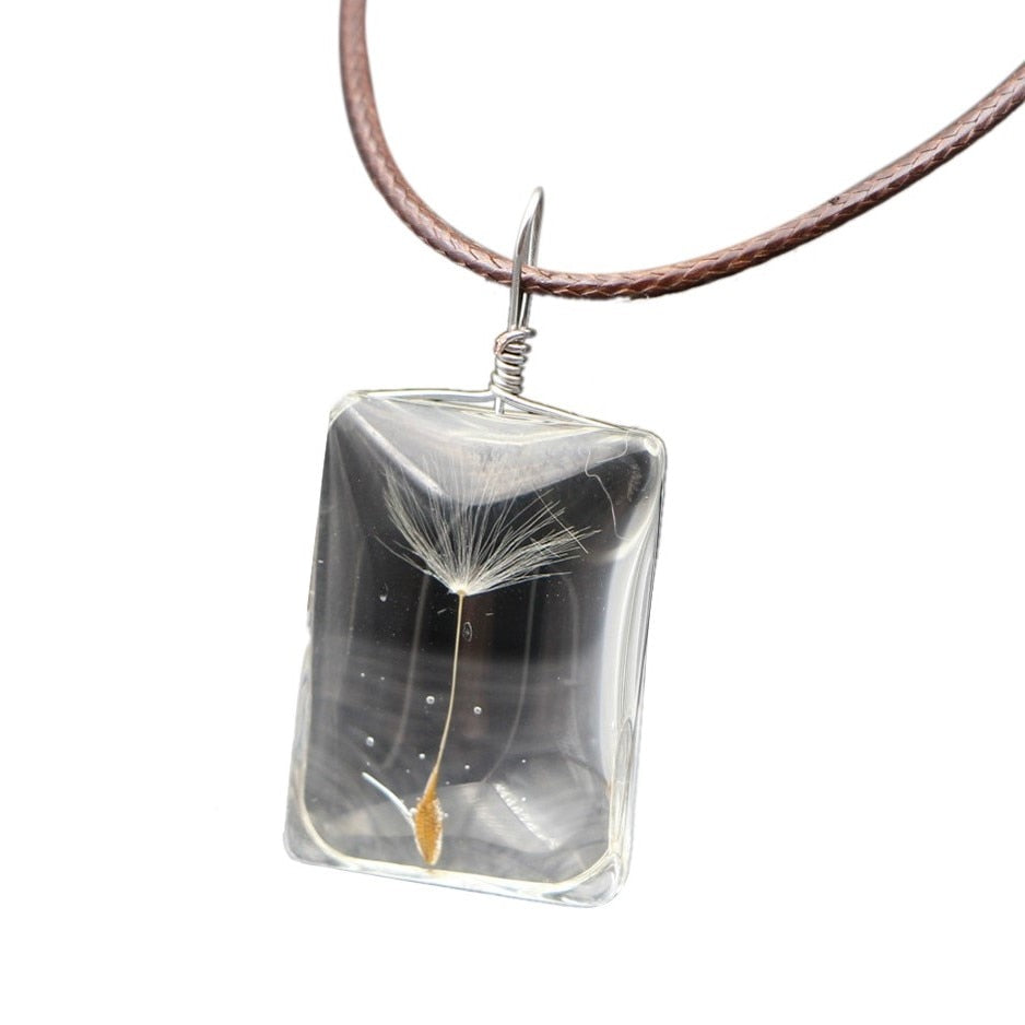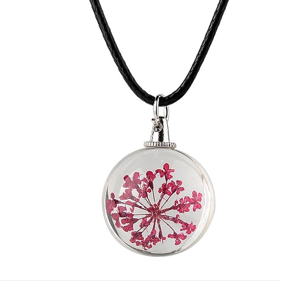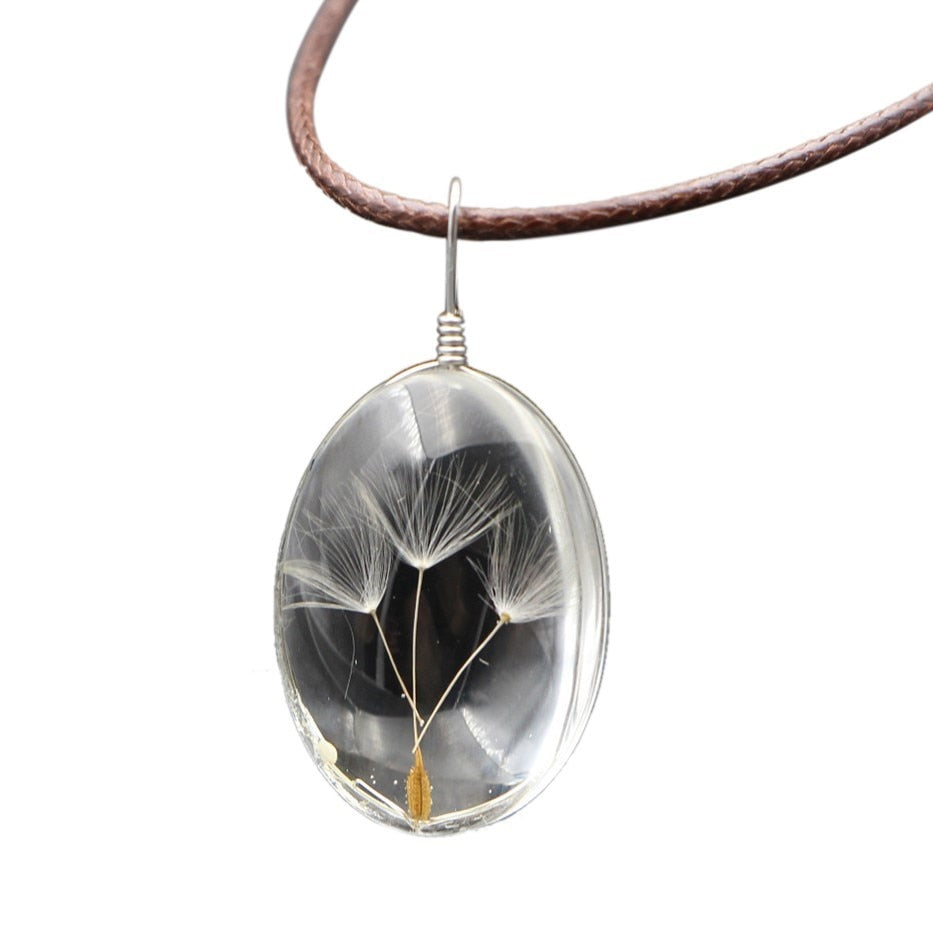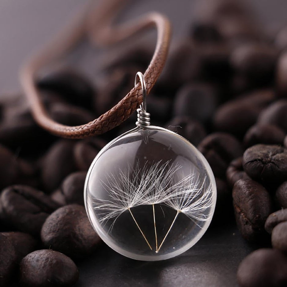 Pendant Necklace Charm! This beautiful necklace features a natural dandelion pendant encased in a transparent lucky WISH glass ball, making it a unique and eye-catching piece of jewelry. The classic style and plant pattern make it perfect for any occasion, whether you're celebrating an anniversary or just dressing up for a night out.