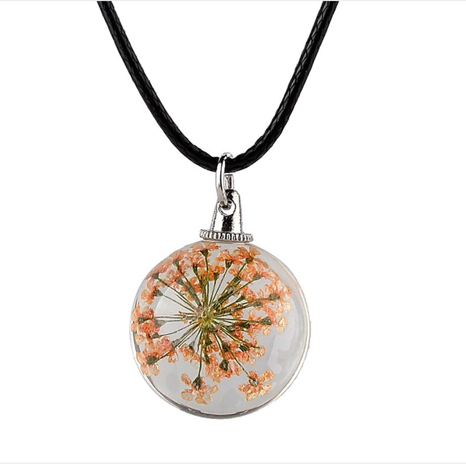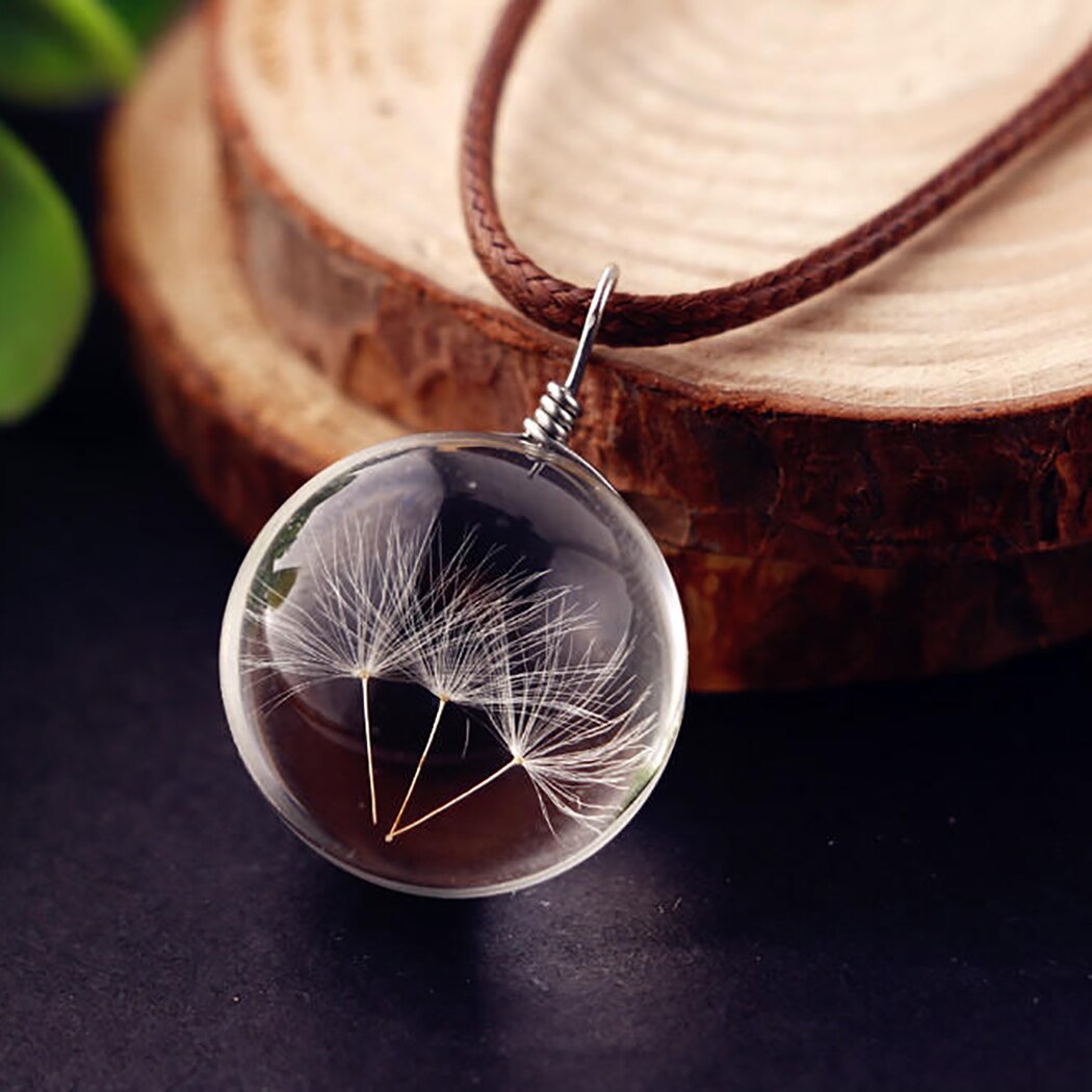Women Necklace Dandelion Glass Ball Pendant Necklace Charm Trendy Natural Dandelion Pendant Transparent Lucky WISH Glass Ball